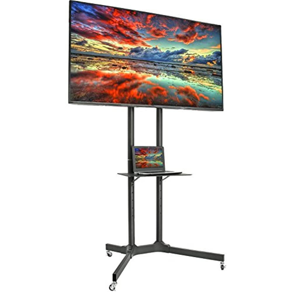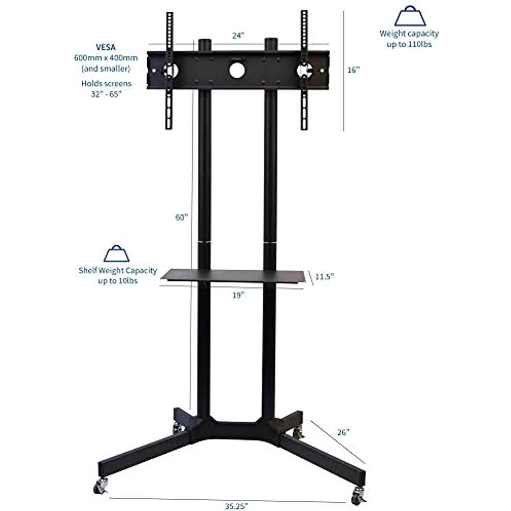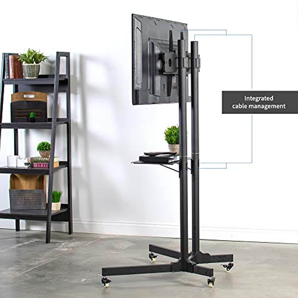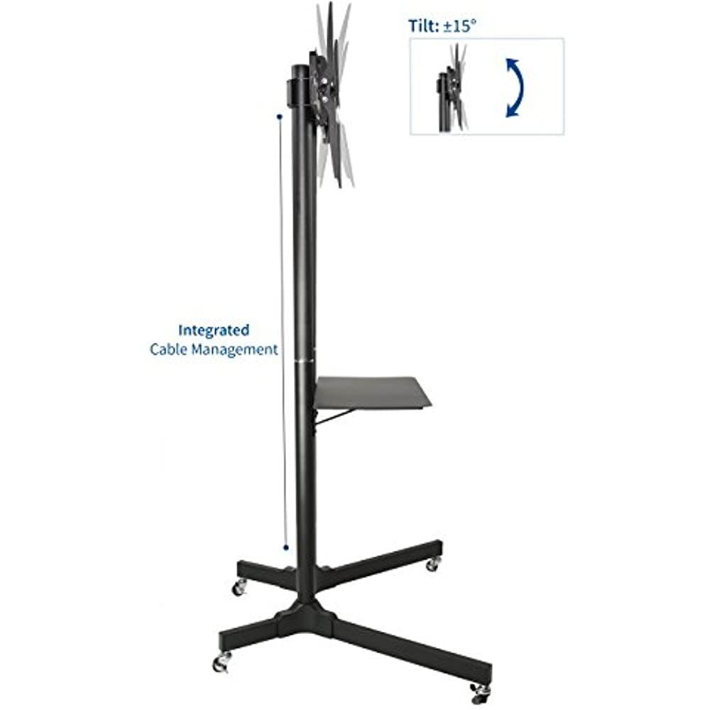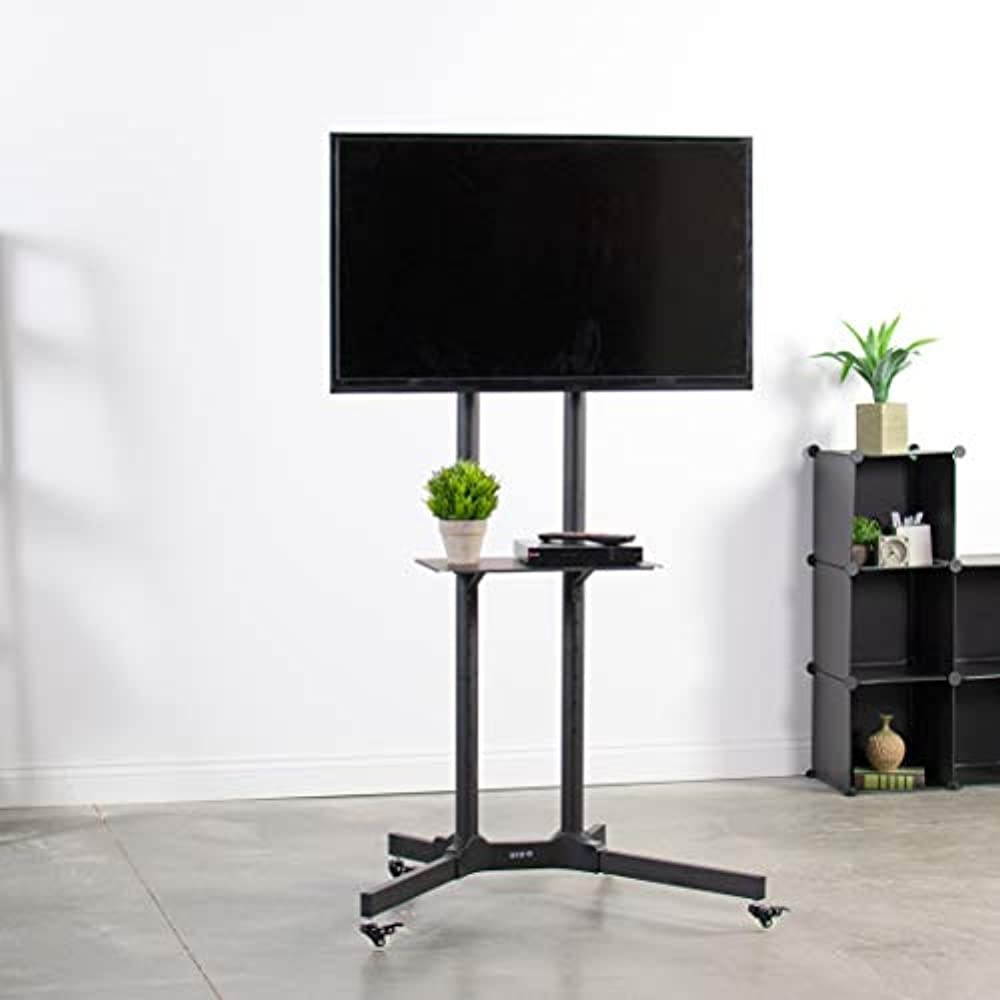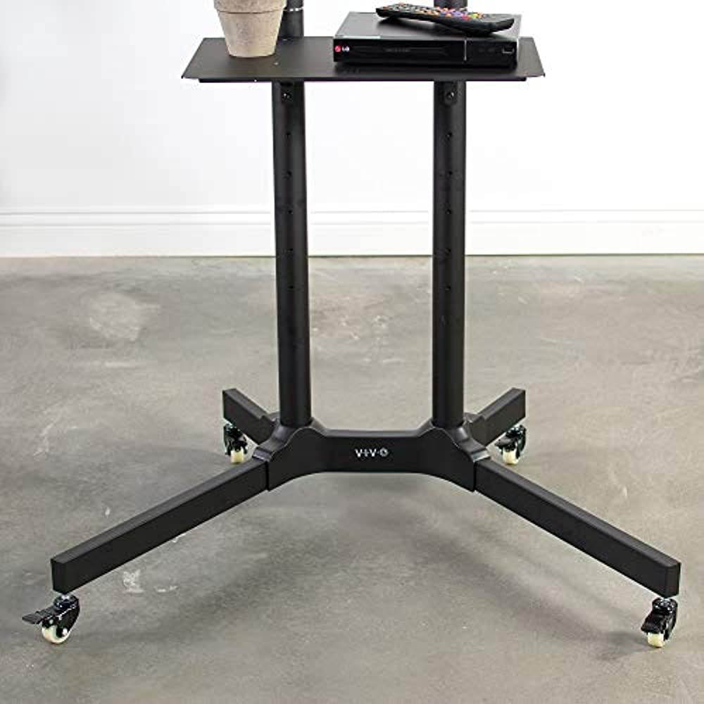 High grade steel TV Cart (STAND-TV03E) from VIVO! Perfect for conference rooms, class rooms, or rolling around your home. Stand comes in a smooth black finish.