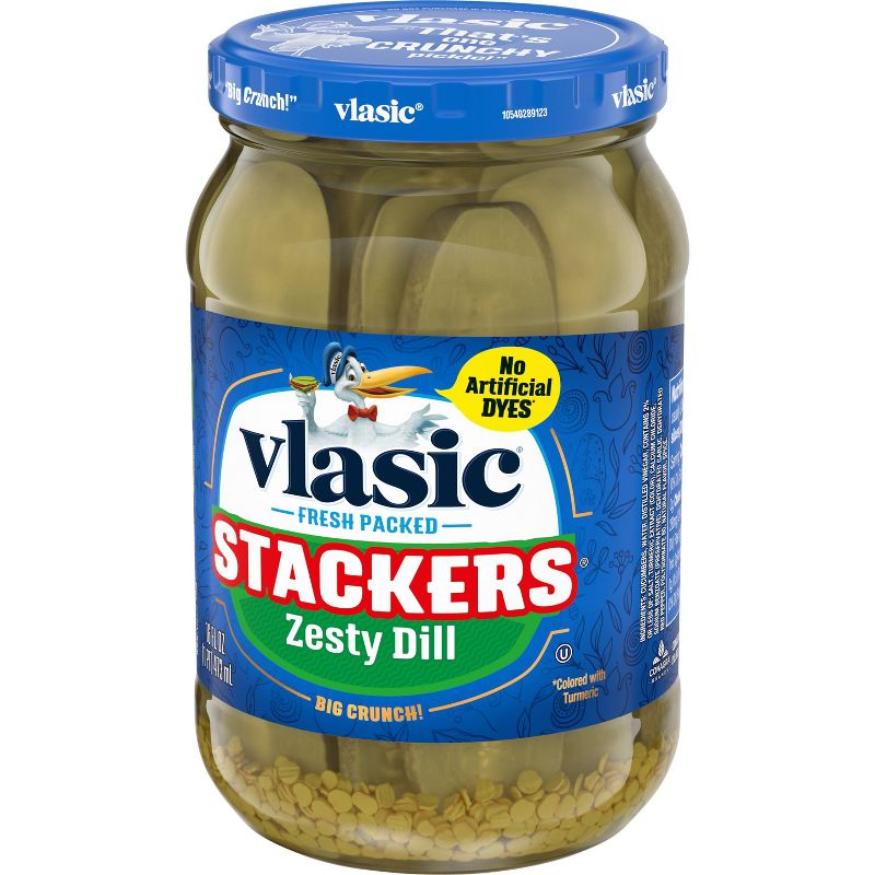 •One 16 fl oz jar of Vlasic Stackers Zesty Dill Pickles
