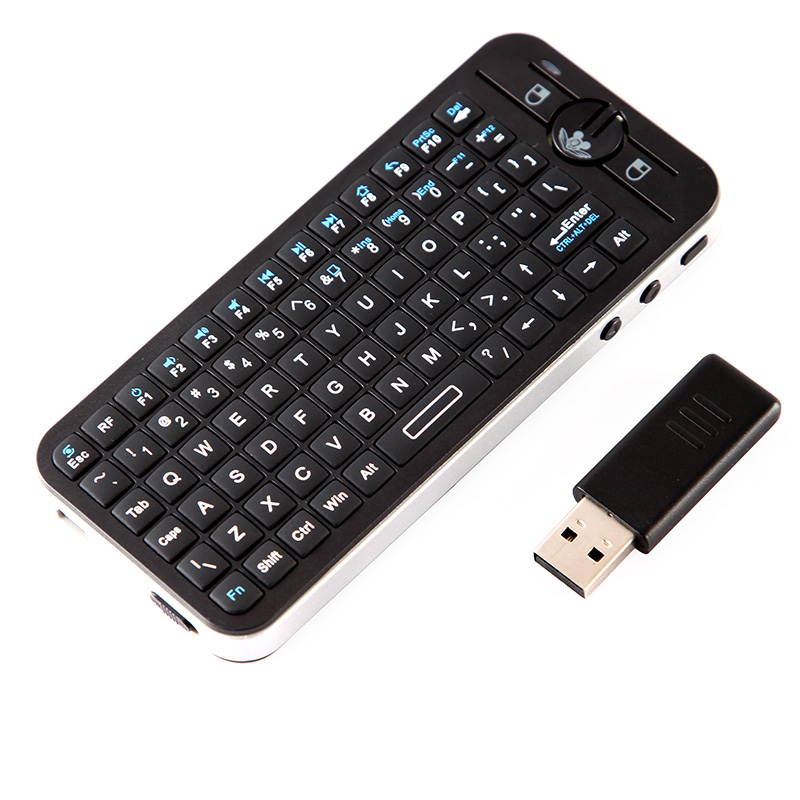 Mic & Speaker Features: RF 2.4G connection, enjoy up to 10M wireless control. 2 in 1 handheld wireless keyboard and fly air mouse, mini, portable, compact & lightweight. Ultra sensitive 3 axial gyro-sensor, more flexible and convenient to control the cursor. USB receiver, no driver needed, plug and play. QWERTY keyboard, very convenient to type and play. Windows multimedia control(play/pause, next/previous, mute, volume up/volume down, etc. ), you can sit in your chair or sofa or even in bed to enjoy the film, music, surt the Internet instead of changing the channel physically. Rechargeable and replaceable lithium battery (included), long standby time. Built-in microphone and speaker for chatting online or enjoying the music.
