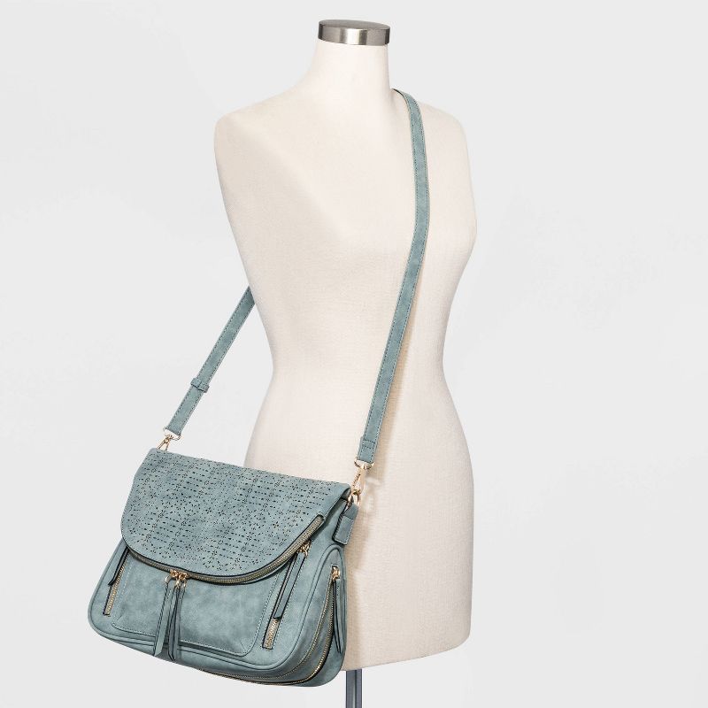 For a chic and easy way to carry your keys, phone, wallet and other essentials, try the Magnetic Strap Closure Mosaic Design Laser-Cut Crossbody Bag from VR NYC. This denim-color faux leather crossbody bag comes in a soft faux-suede finish, and it has unique details like the laser-cut mosaic design on the top flap as well as multiple zippers with long pulls. The multiple interior slip pockets and zip pocket help keep your stuff organized inside the bag, while the adjustable shoulder strap lets you find your perfect fit for comfortable carrying.