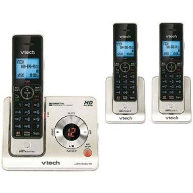 VTech three handset cordless answering system. Voice announce caller ID-audibly announces the name and number of the caller on all of the handsets and base unit. Push-to-talk intercom-use as a multiple handset walkie talkie system to instantly communicate with any or all of the handsets within the system. HD audio-frequency band has been extendd allowing for the signal to be reproduced and tuned for a full and clearer sound. DECT 6.0 technology. Protect yourself from identity theft with digital security-your call is digitized and encrypted, making it nearly impossible for someone to eavesdrop. Three handsets with only one phone jack. Expand this system to a total of 12 cordless handsets and 2 cordless headsets (uses LS6405 accessory handset and IS6100 headset). Digital answering system with 14 minutes of digital recording time. Caller ID/ call waiting-stores 50 calls. Handset speakerphone-enjoy hands-free conversations on each handset. 50 name and number phonebook directoy-easily store and dial frequently called numbers. Message retrieval from the handset. Blue backlit keypad and display. Trilingual prompts-English, Spanish or French. Wall mount bracket included.