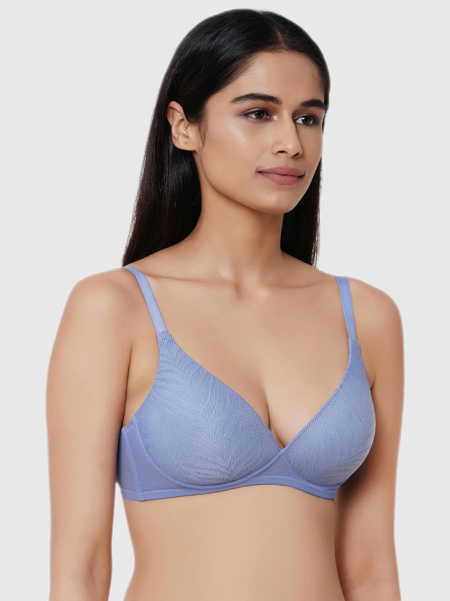 Wacoal adds a dash of allure into your essential range with this blue bra. Designed to support your natural shape, this bra features light-padding for added comfort whilst the delicate lace work renders femininity. It allows you to move freely while offering a snug fit. Made from high quality nylon fabric, this bra is extremely lightweight. Partner yours with matching briefs from the brand.