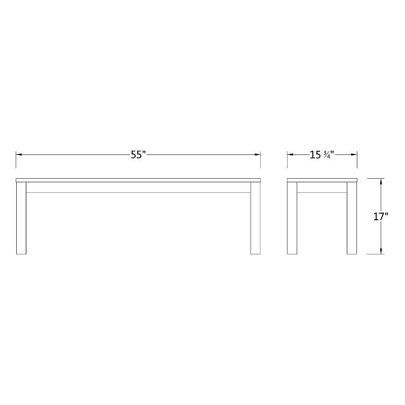 Seating Piece 1: Patio Bench: 17 Inches (H) x 55 Inches (W) x 15.75 Inches (D), 0 Inches (seat back height), 15.75 Inches (seat depth)