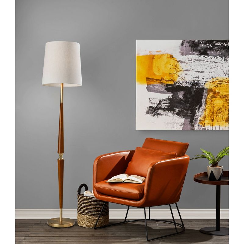Designed with retro inspiration on the mind, the Weston Floor Lamp makes a bold style statement in any room. The body is crafted from a walnut finished sustainable rubberwood with warm, antique brass metal accents. A tall, slightly tapered drum shade in textured cream linen completes the look. A 3-way rotary socket switch allows you to choose the level of ambient light.