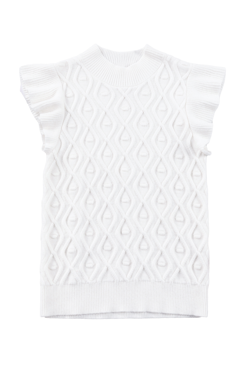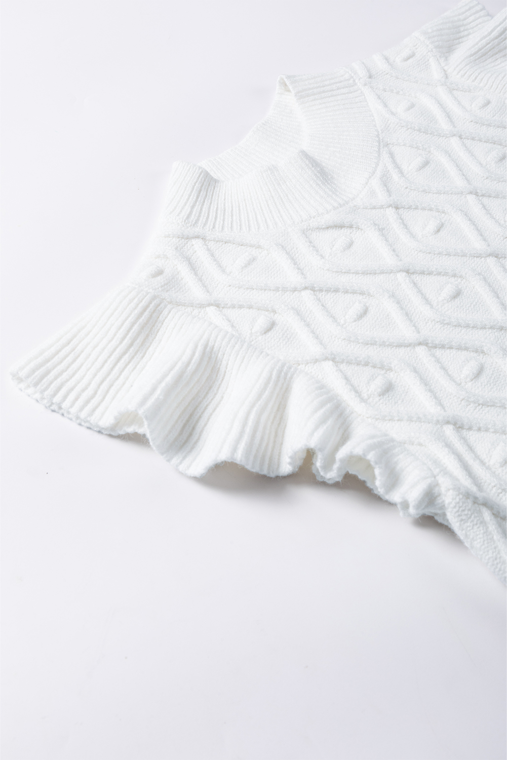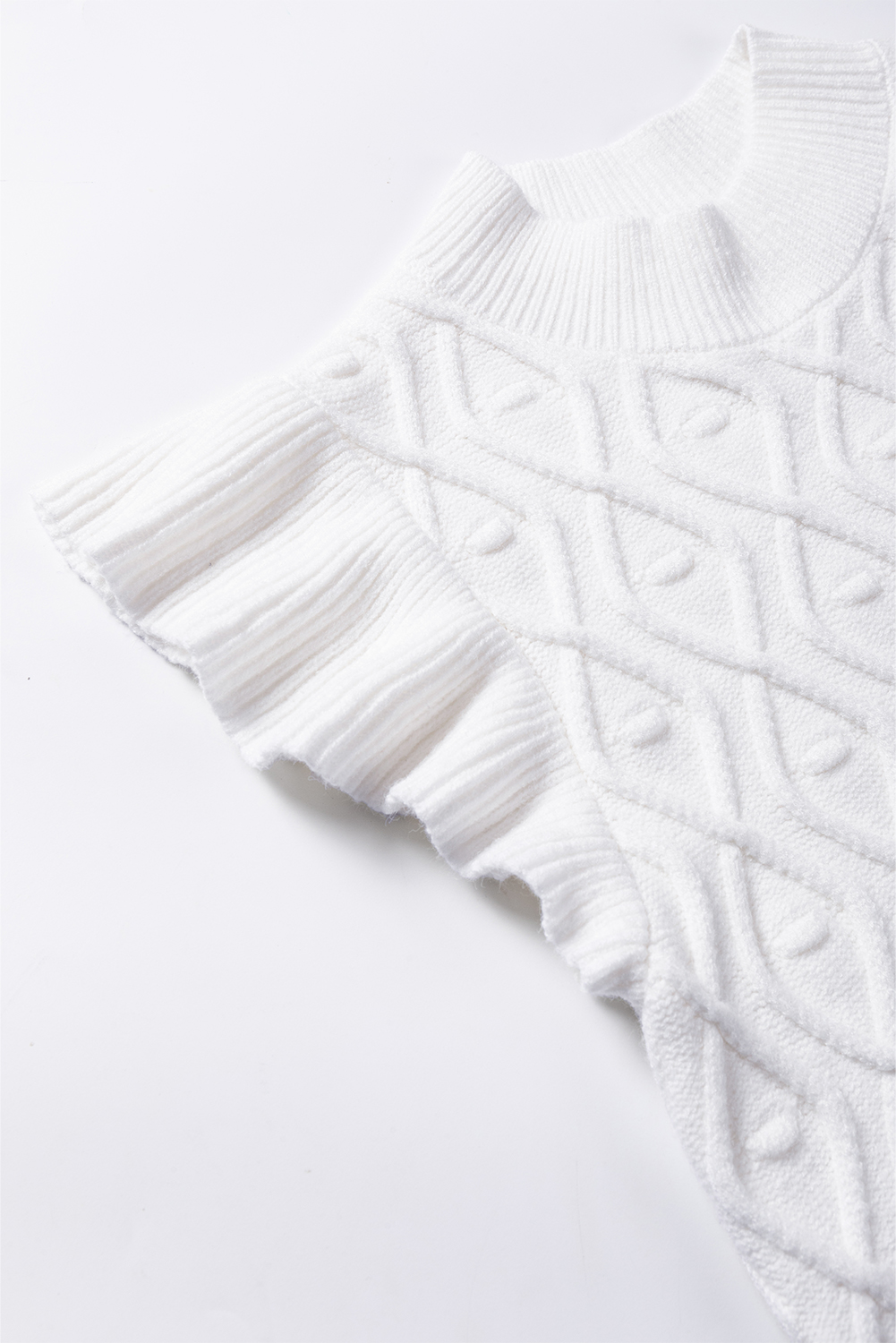 The vest features a charming ruffled design that adds a feminine and playful touch to the classic sweater vest style.