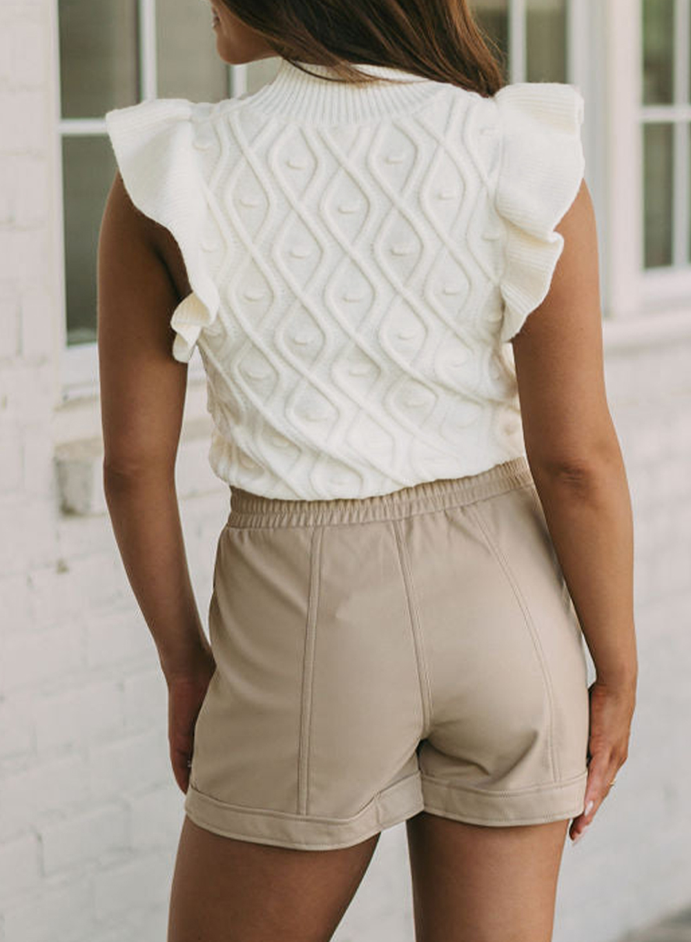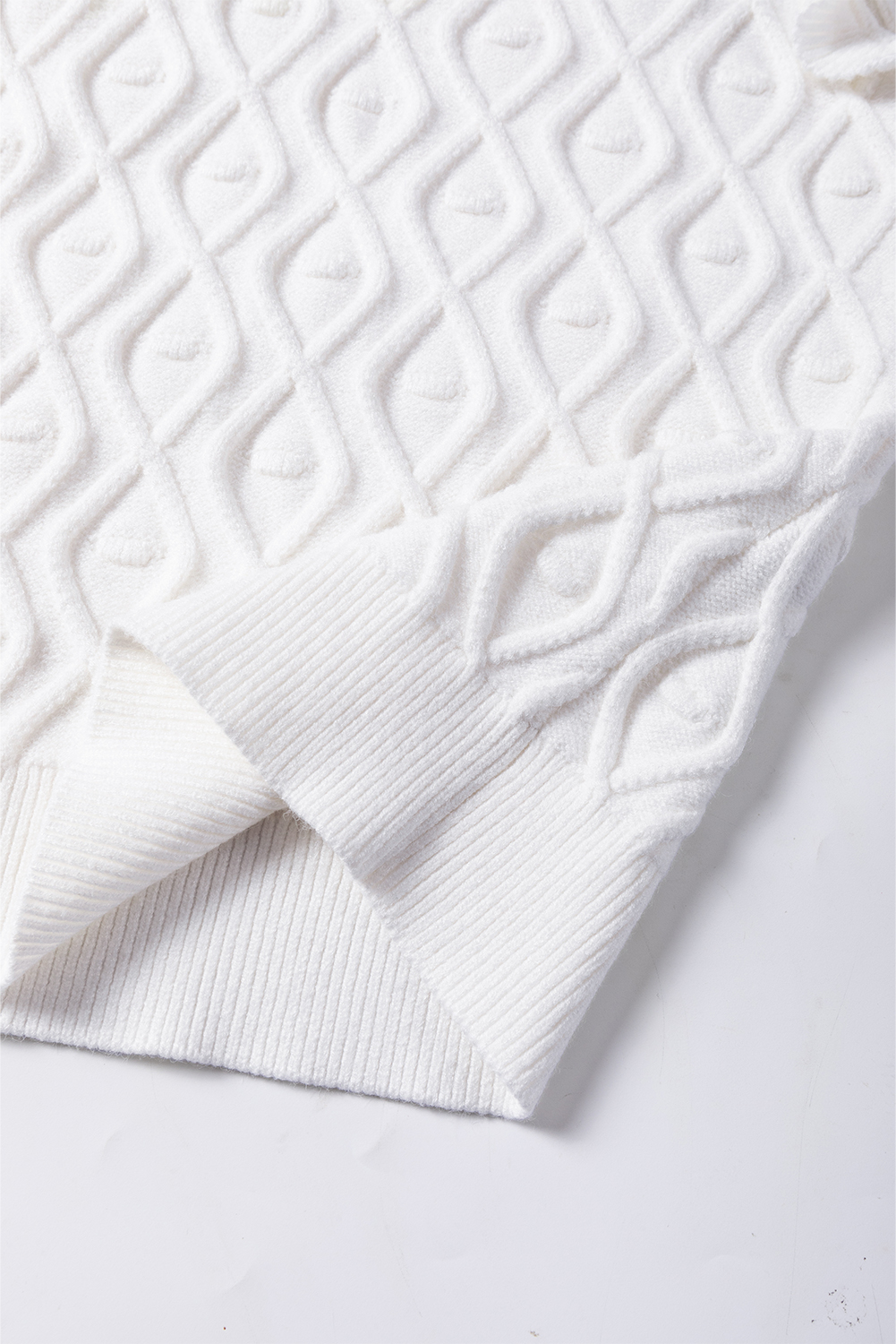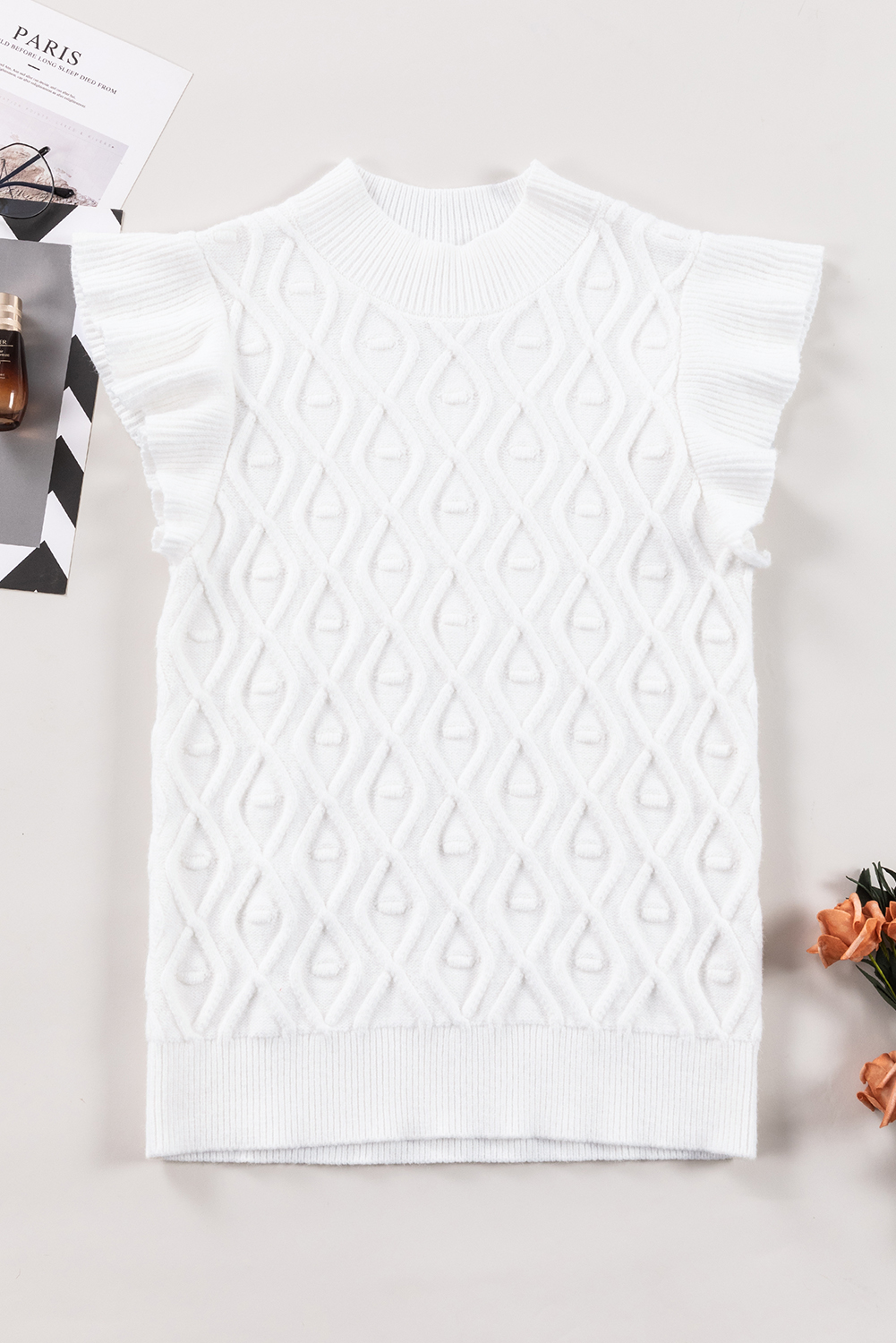 The vest features a charming ruffled design that adds a feminine and playful touch to the classic sweater vest style.