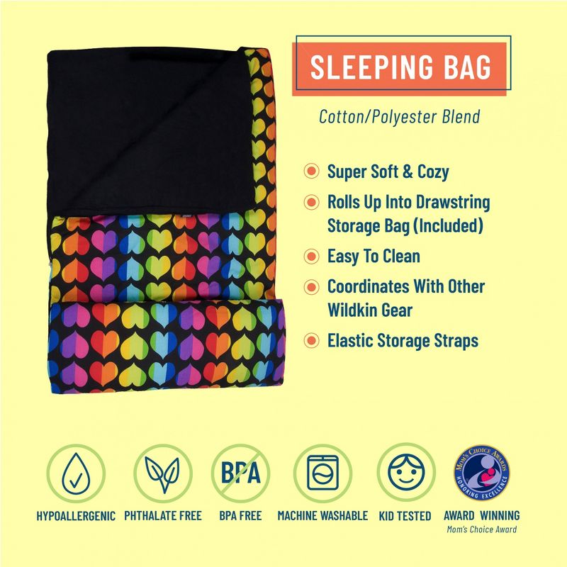 Drifting off to sleep is a breeze when your child is snuggled up in Wildkin's Original Sleeping Bag. Each Sleeping Bag is made from a super soft blend of cotton and polyester materials to keep your little one extra warm and features a roll-up design, complete with elastic storage straps and a coordinating drawstring-close storage bag. Its travel-friendly design makes it easy for your little one to take their Sleeping Bag with them to-and-from sleepovers, grandmas house, and more. Each Sleeping Bag was designed to coordinate with other Wildkin gear. From lunch boxes, to duffel bags, to backpacks, your child will love having their favorite designs with them on-the-go.