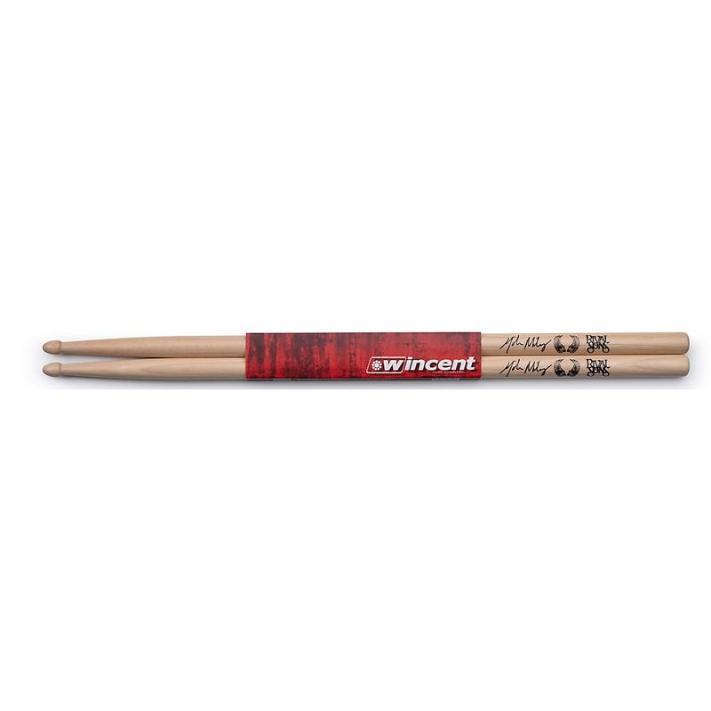 The Wincent W-MMS drumsticks are the signature sticks of drummer Michael Miley from Rival Sons. These sticks offer a medium weight with added length to the front for extra reach and shoulder tapers for a relaxed stroke. With acorn wood tips for defined cymbal sticking, the W-MMS Artist sticks are treated with a Unique Wax Protection to improve feel, durability and longevity. The Michael Miley drumsticks also feature Rival Sons “Wings” marks on the butt-ends for quick, easy identification in stick bag.