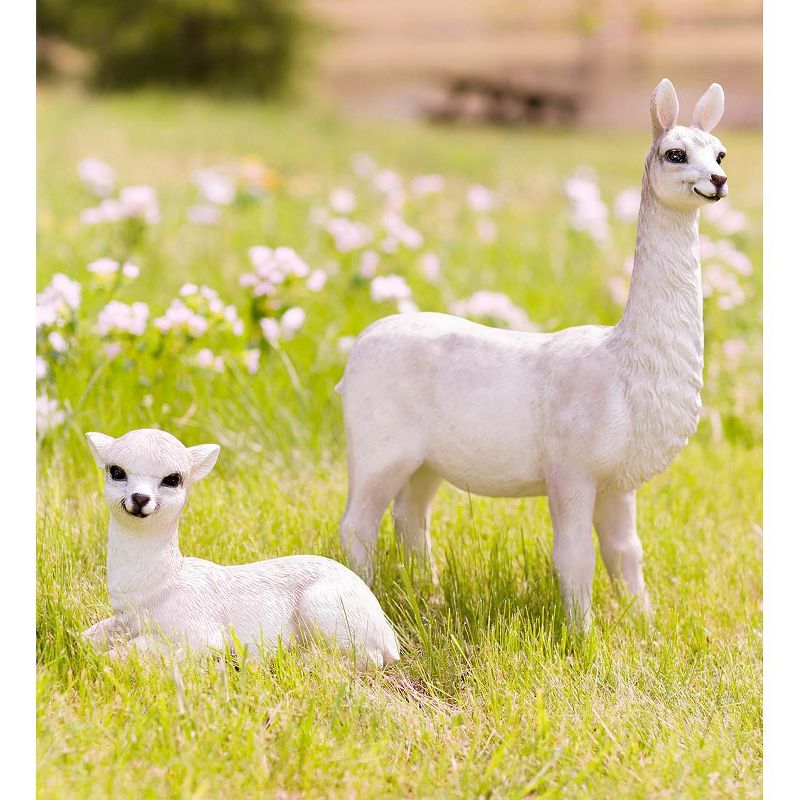 This adorable Lying Baby Llama statue captures the distinctive look of one of South America's most famous residents. This young llama, known as a cria, sits comfortably (known as "cushing"), with alert ears and a happy expression. Cast in weather-resistant resin from a detailed original sculpture. Llamas are the largest and most recognizable members of the South American camelid family that also includes alpacas, guanacos and vicuñas. The family also includes Bactrian camels (two humps) and Dromedary camels (one hump). Adult llamas are used as pack animals by Andean cultures and can be found in Argentina, Bolivia, Chile and especially Peru.