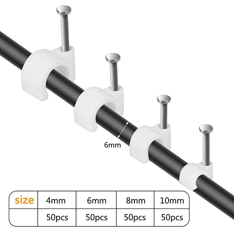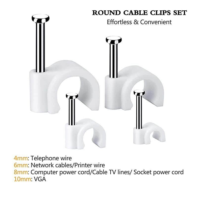 VARIETY OF USES: You will get 50 Count of Each Size means Very Helpful for Your Home, Office Management, No Matter its Indoor or Outdoor. Easily can use in Electrical, Ethernet, Dish Wire, Coax, RG6, RG59, CAT6, RJ45 or Any Wire / which You Want to Organize in Proper Manner. Round Plastic Clips - Round Plastic Clips Protects Insulation and are Weather Resistant, Impact Resistant & Non-Corrosive Complete with Corrosion Resistant Hardened Nails for Securing to Wood, Cement, Plaster, Brick, etc.