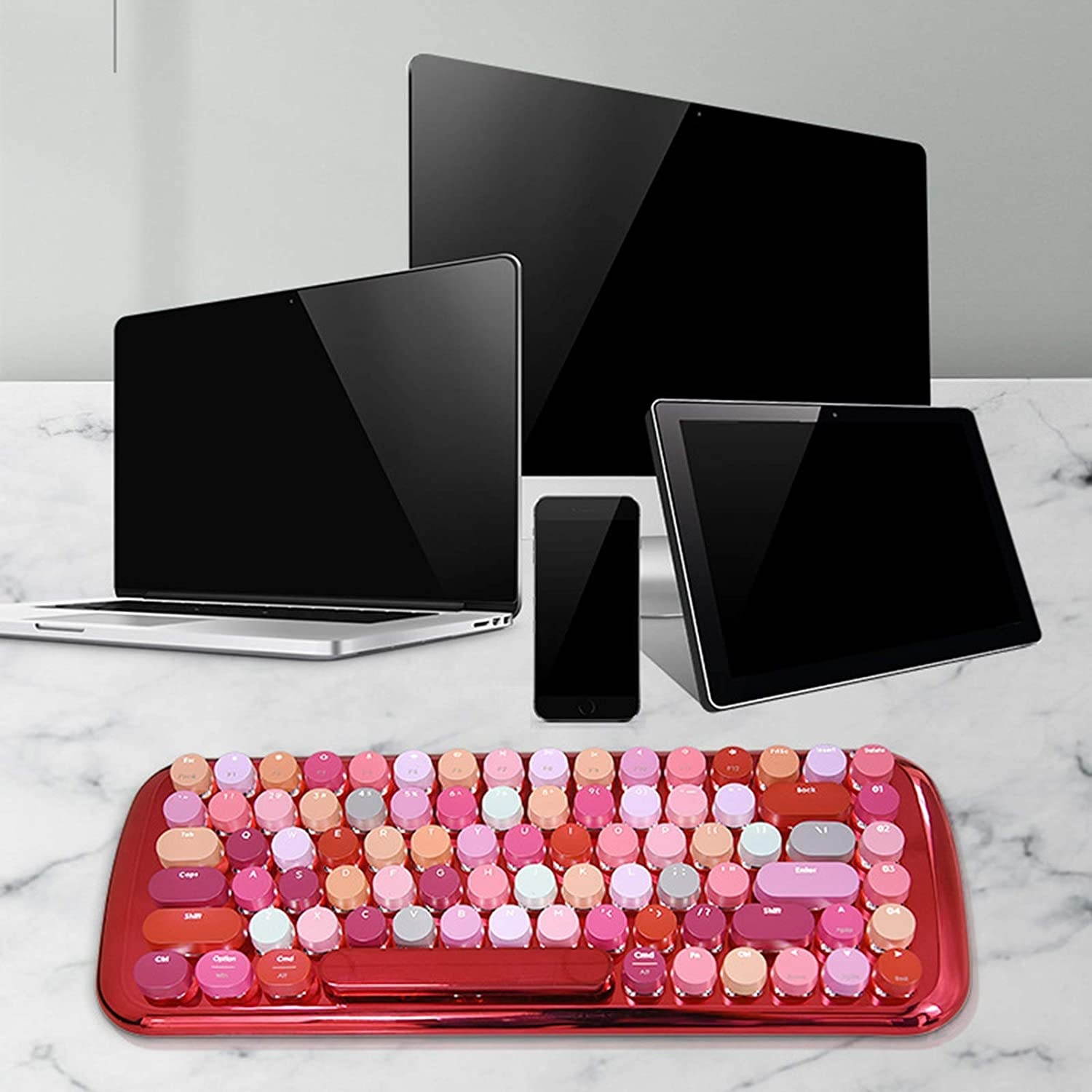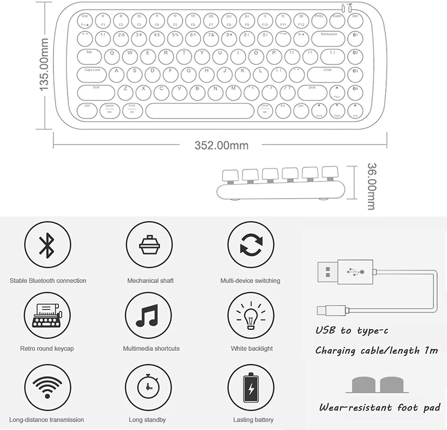 Win, Mac, Android and iosSuitable for PC, notebook, tablet, mobile phone, etc.Use across devices to connect up to 4 devices at the same timeMouse features:Bluetooth modeDual mode switchingWear-resistant and durableMute button designElectromagnetic receiver, low power consumptionLong battery lifeBluetooth keyboard features:Stable Bluetooth connectionMechanical axisMulti-device switchingRetro round keycapMultimedia shortcutsWhite backlightLong-distance transmissionLong standby timeLasting powerOur product is a Bluetooth 5.1 version rechargeable mechanical keyboard, built-in 1000MA lithium battery USB to Type-C charging cableCan connect 4 Bluetooth devices at the same time (mobile phone/tablet/notebook, etc...)Our product is a Bluetooth 5.0+2.4 dual-mode rechargeable mouse, built-in 600MA lithium battery, and a shortcut key to return to the desktop2.4G mode: