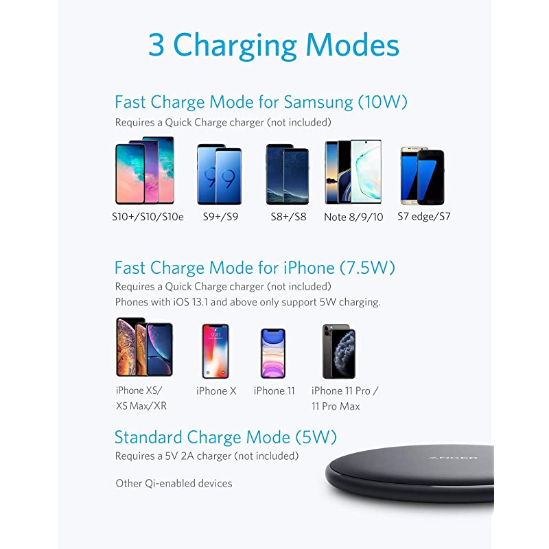 *****The Need for Speed: A high-efficiency chipset provides 10W high-speed charging for Samsung Galaxy, while iPhones get a boosted 7. 5W charge that's 10% faster than other wireless chargers. For best results, use a quick charge Adapter (9V/2a) for Samsung Galaxy and iPhone charging.