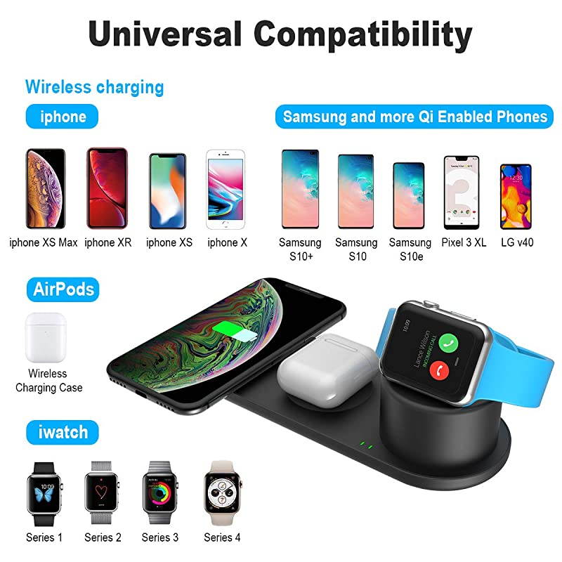 (Please Note: Apple watch charger cable not included, airpods 1st gen charge case not compatible with wireless charging, please make sure your airpods charge case support wirelss charging.