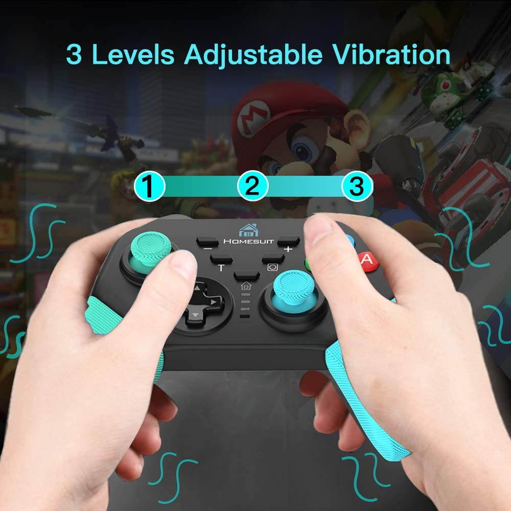 ???Dual Motors & Turbo Function?: Homesuit wireless controller for Nintendo switch constructs with dual motors to reach 3 different levels vibration from weak, medium to strong; With the auto adjustable turbo function from 5-20 shoots/s. You can enjoy the best turbo speed to battle and to be the last one standing.