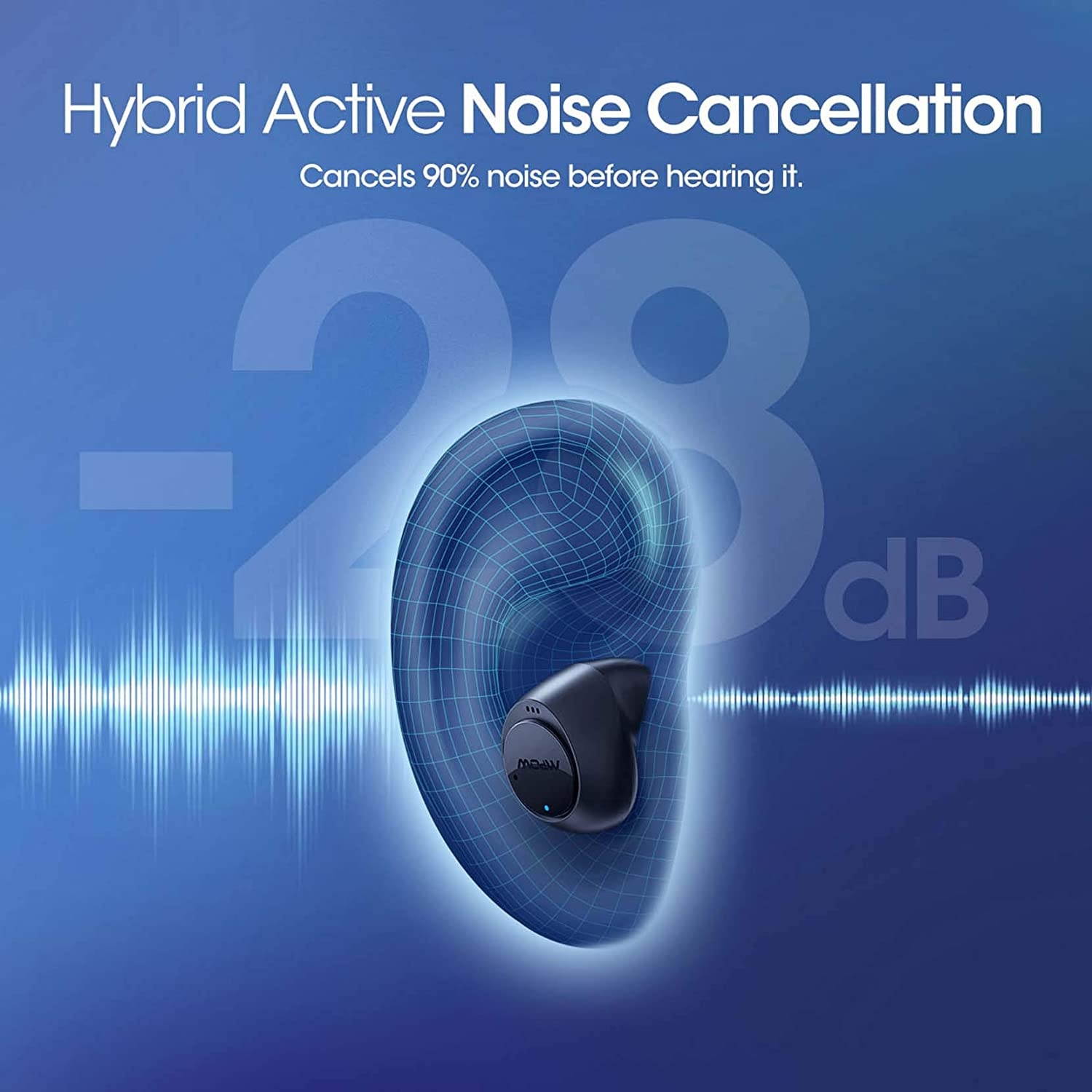 Hybrid Active Noise Cancellation: The outward-facing microphones can detect the external noise, and the inward-facing microphones monitor the noise inside the ear canal, and the earbuds counter it with equal anti-noise at the same time to eliminate the inside and outside noise. This technology doubles the noise-cancelling effect, allowing you to enjoy music in a more immersive way.