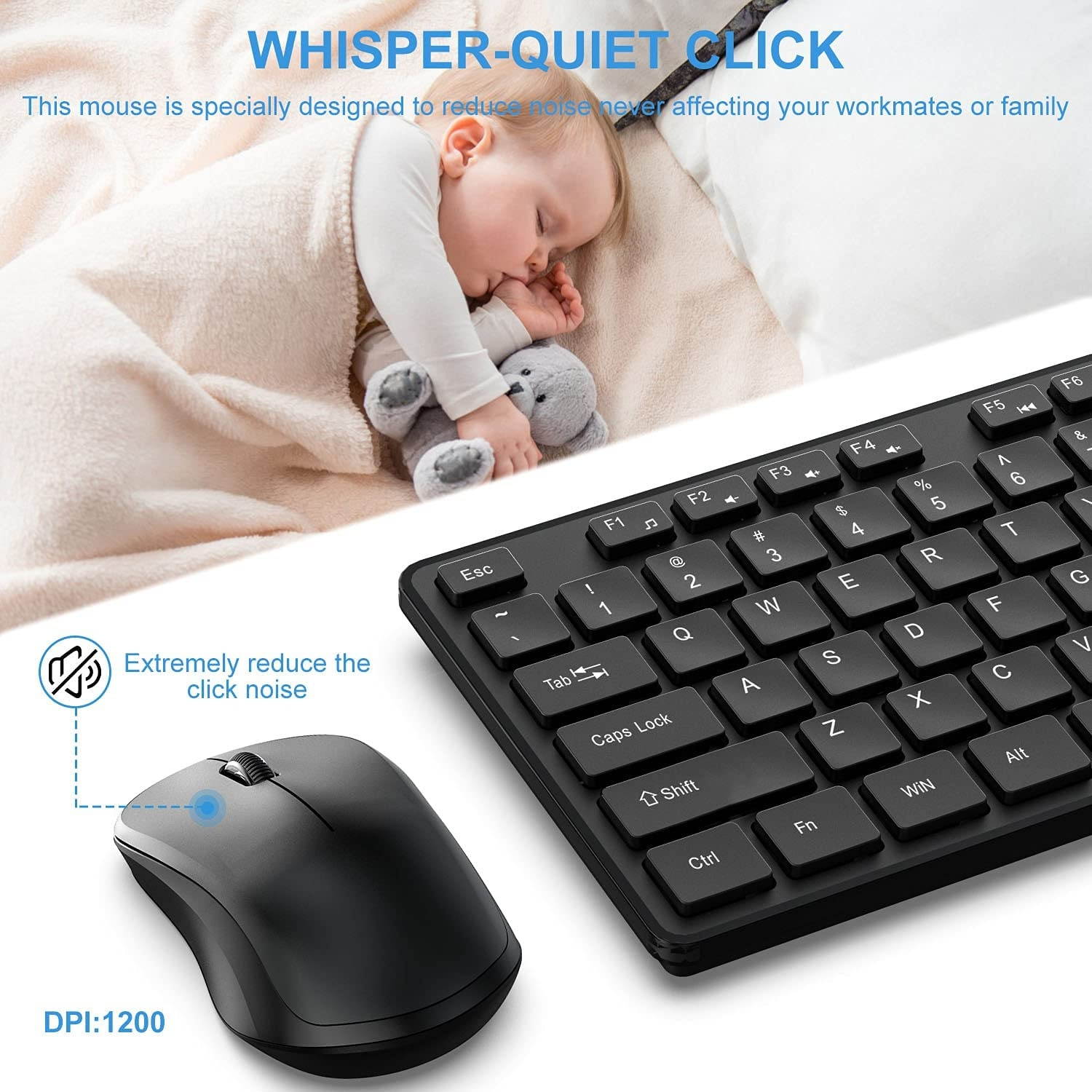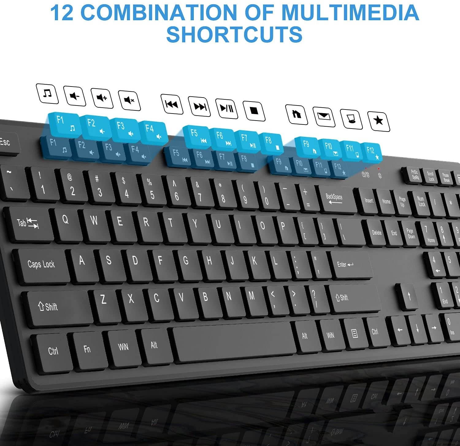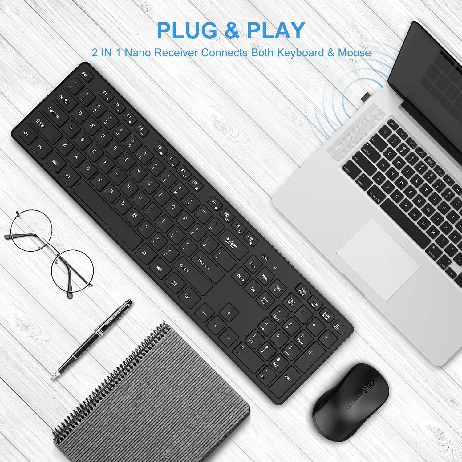 ? [FULL SIZED CONVENIENCE] WisFox Wireless Keyboard and Mouse Combo comes with a precision mouse and a full size keyboard with 106 keys including a number pad?? arrow keys and function keys?? the standard US QWERTY layout. Enjoy easy work away from your computer!
