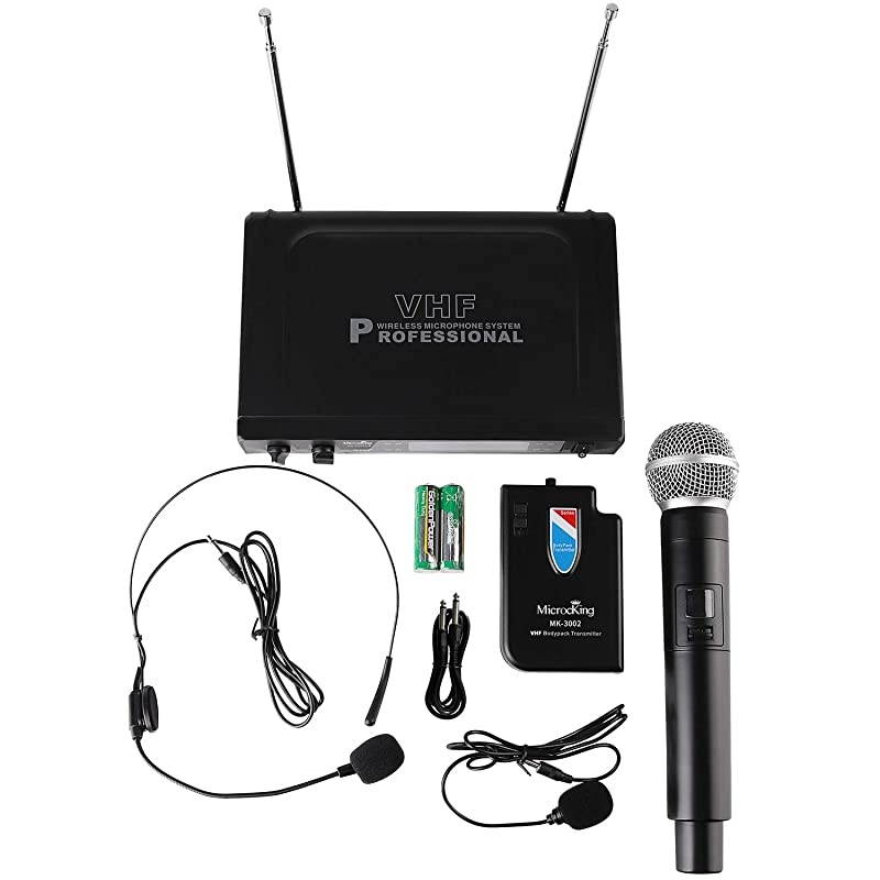 Headset/lapel combo: sensitive headset and unidirectional lapel mic to use with bodypack. Pick up sound easily and transmit sound smoothly. Long range operation of 260ft. Long battery life of 16 hours continuous use. Amazingly clear and robust sound quality for professional events. Excellent material quality with reliable sound performance.