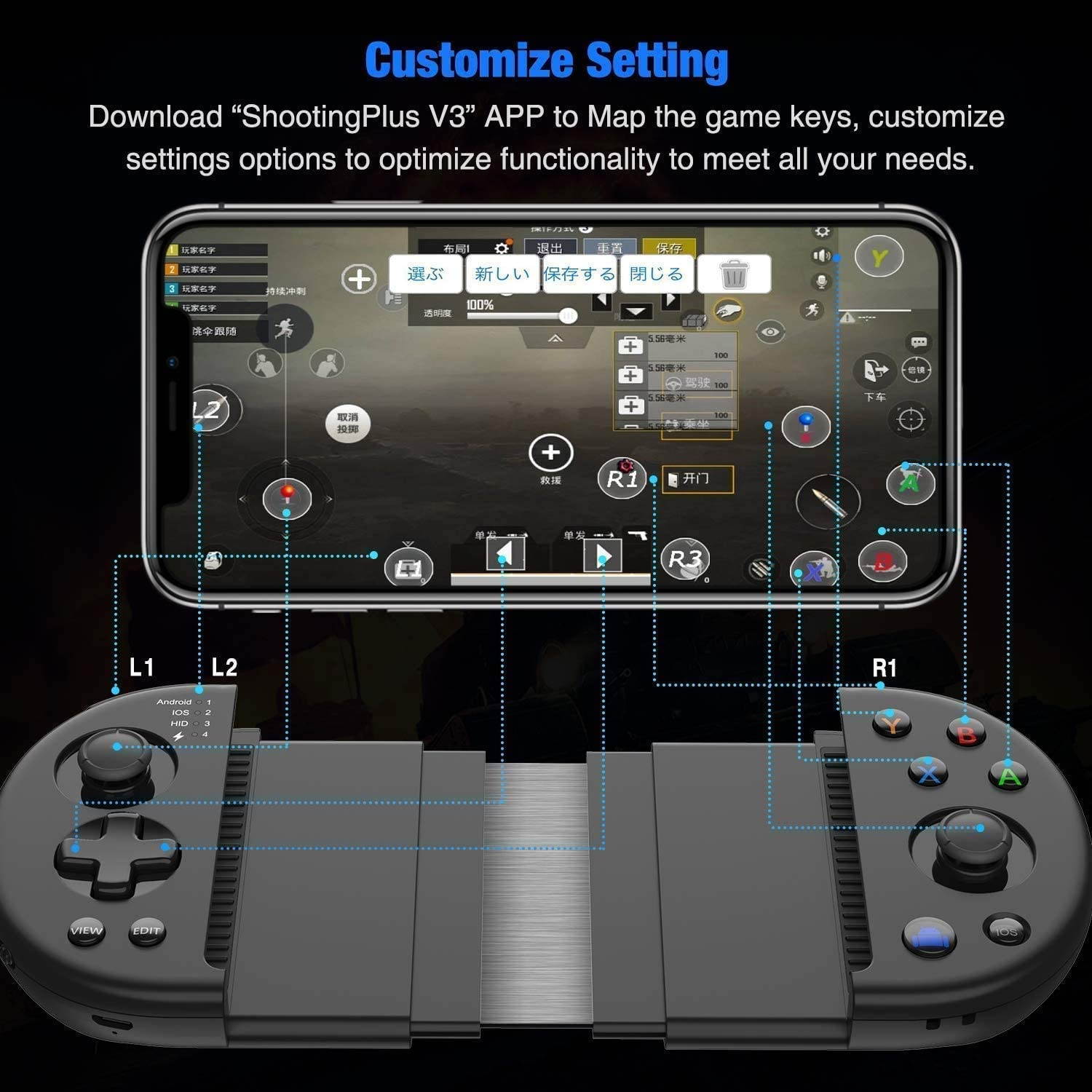 Mobile gamepad support customize mapping, customize settings options to optimize keys functions to meet all your needs.