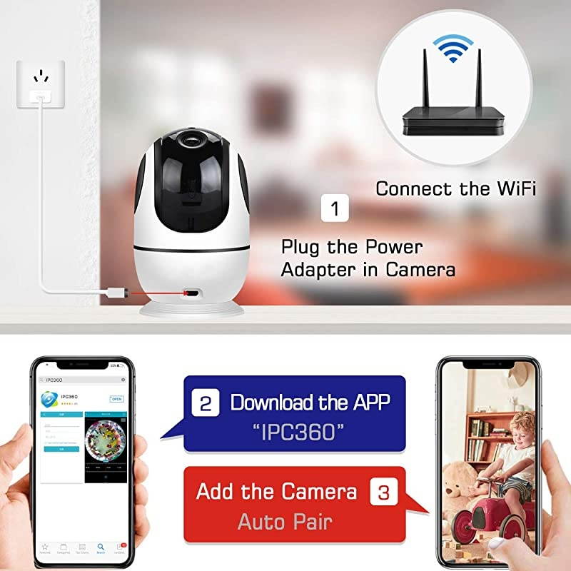 ***** **********Best Quality Guranteed. *****1080P Home Video Security Camera with PANORAMIC 360TOUCH VIEW NAVIGATIONFull HD home camera with 1920*1080P resolution 355horizontal & 105vertically rotation, covers every corner of your home; super IR LED night vision lets you detect whats happening around the clock, without light pollution, gives full day protection for you. *****Clear Two-Way Audio & Smart Motion Detection Alerts Home CameraTalk to your loved ones with built in anti-noise filter for a clear 2-way audio experience wherever you are. Responsive and advanced microphone with a built-in mic and speaker, you can watch and listen what's happening in the house or have a real-time communication with your family.