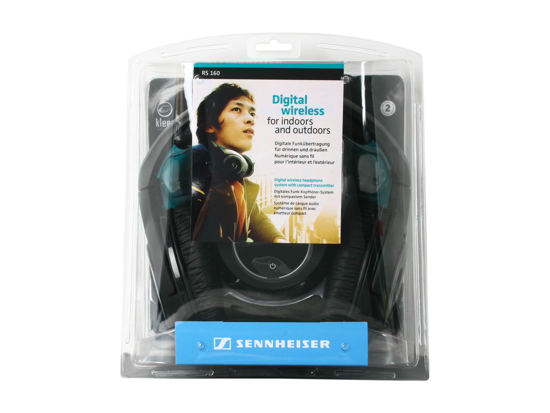 The RS 160 Wireless Headphone System utilizes Kleer's lossless digital wireless audio transmission with a range of 60 feet. It features: audiophile grade sound and reception , the flexibility to operate four pairs of headphones off the same transmitter, digital volume control with mute, leatherette earpads and headband cushions for superior comfort, an audiophile level transducer systems with neodymium magnets for crisp sound reproduction, and interference free reception between the headphone and transmitter. Experience the sound quality and wireless flexibility of the Sennheiser RS 160 Kleer Digital Wireless Headphone System!