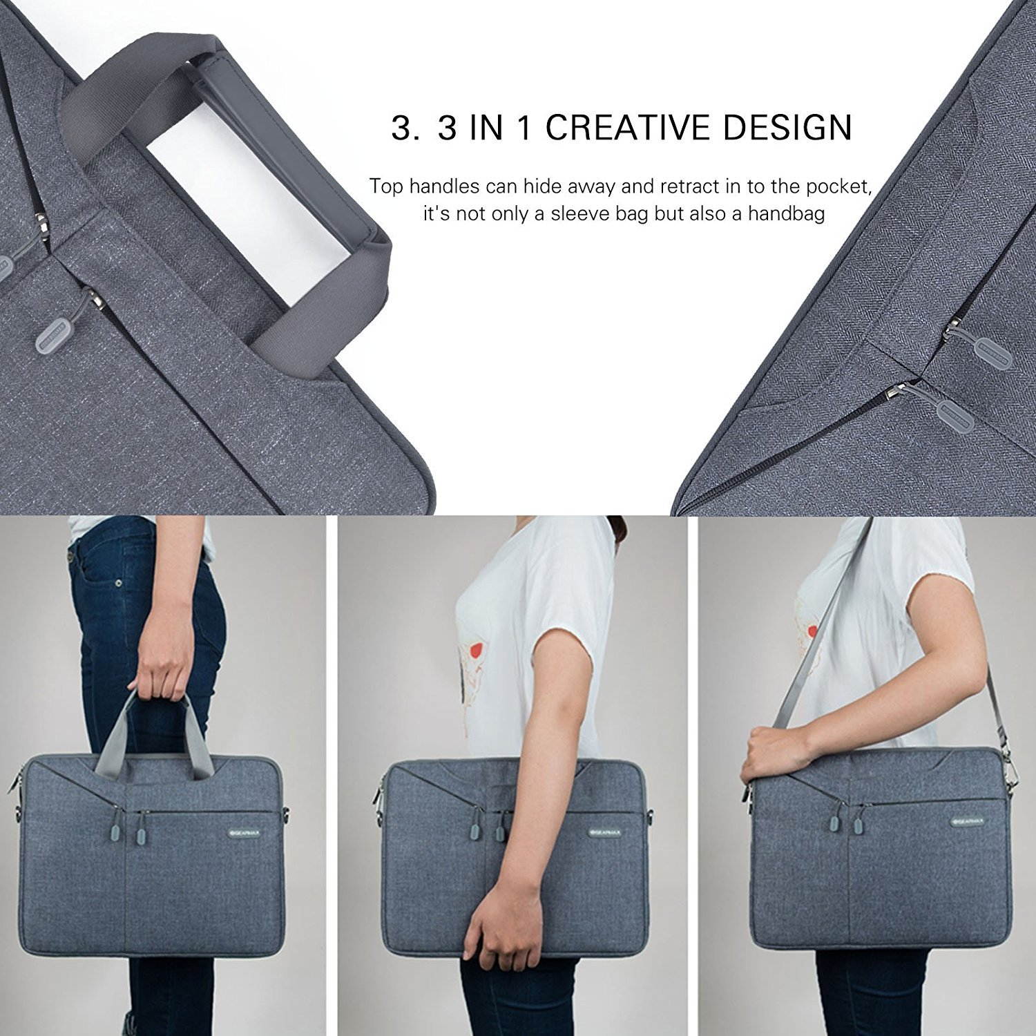 MULTI-POCKET DESIGN WITH HANDLE: Two roomy compartments made of soft flannelette inside the bag protect laptop from being shocked and scratched, meantime provide extra room for books, documents, etc. Multi-compartment design with various pockets for phone, mouse, adapter, pens etc.