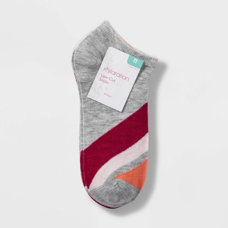 Add comfort to your casual footwear with this Women's Chevron 10pk Low Cut Socks from Xhilaration in Assorted Colors 4-10. Made from a soft stretch fabric, they're super comfortable to wear with sneakers, slip-ons and more. The sleek rib-knit trim maintains a secure fit to keep them in place while you go about your day. Pair them with sneakers or your choice of low-profile shoes for a versatile and comfortable pick with any casual look.