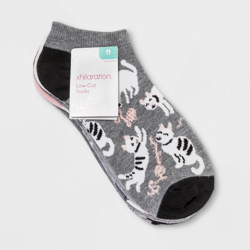 Add purr-fect fashion to your sock drawer with this 6-Pack Playful Cats Low-Cut Socks from Xhilarationâ„¢. This multipack of low-cut socks makes a practical addition to your daily wear essentials. Featuring an assortment of solids, stripes, triangles and playful cat patterns, these casual socks give a whimsical spin to your everyday look. The soft, stretchy fabric makes them extremely comfortable to wear, while the neat elastic trim offers a secure fit to keep them in place. Wear them with sneakers or with your choice of casual shoes to flaunt your versatile style.