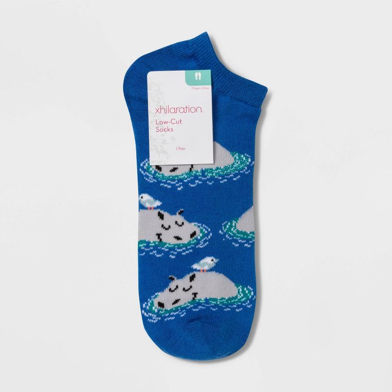 Add cute fashion to your sock drawer with this Women's Sparkly Hippo Low Cut Socks - Xhilaration™ Blue 4-10. These low-cut socks make a practical addition to your daily wear essentials. These casual socks give a whimsical spin to your everyday look. The soft, stretchy fabric makes them extremely comfortable to wear, while the neat elastic trim offers a secure fit to keep them in place. Wear them with sneakers or with your choice of casual shoes to flaunt your versatile style.
