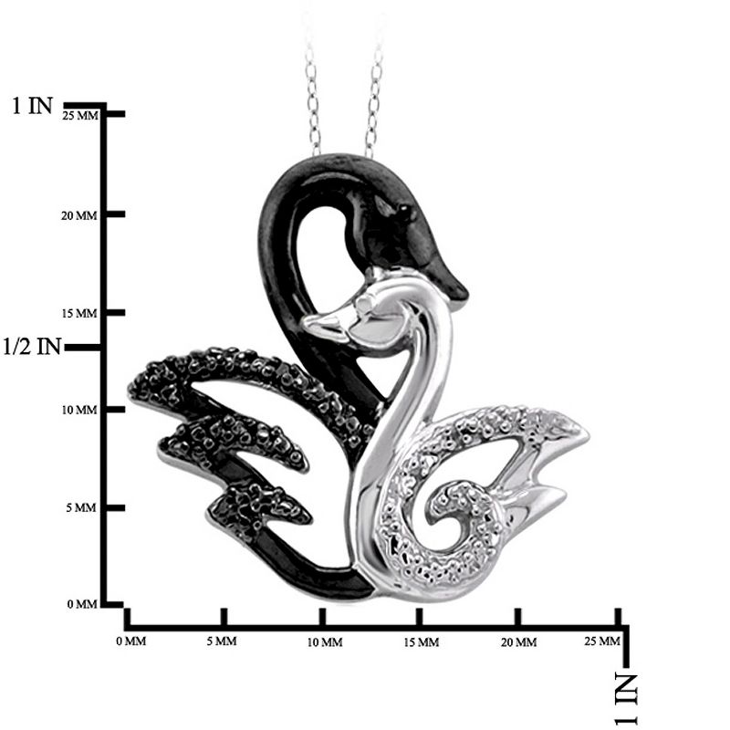 Add some grace to your jewelry wardrobe with this Sterling Silver Accent Round-Cut Black and White Diamond Pave Set Swan Pendant. This women's necklace makes a whimsical choice to your styling essentials. Complete with a rope chain for classic style, this sterling silver pendant sports two attached swan accents in an elegant polished finish for sweet accessorizing to your look. The black and white diamond embellishments add some dazzle and contrasting texture, while the traditional spring ring clasp makes for secure wear. Pair with a range of casual tops, work shirts and other ensembles to make your outfit stand out and shine wherever you go.