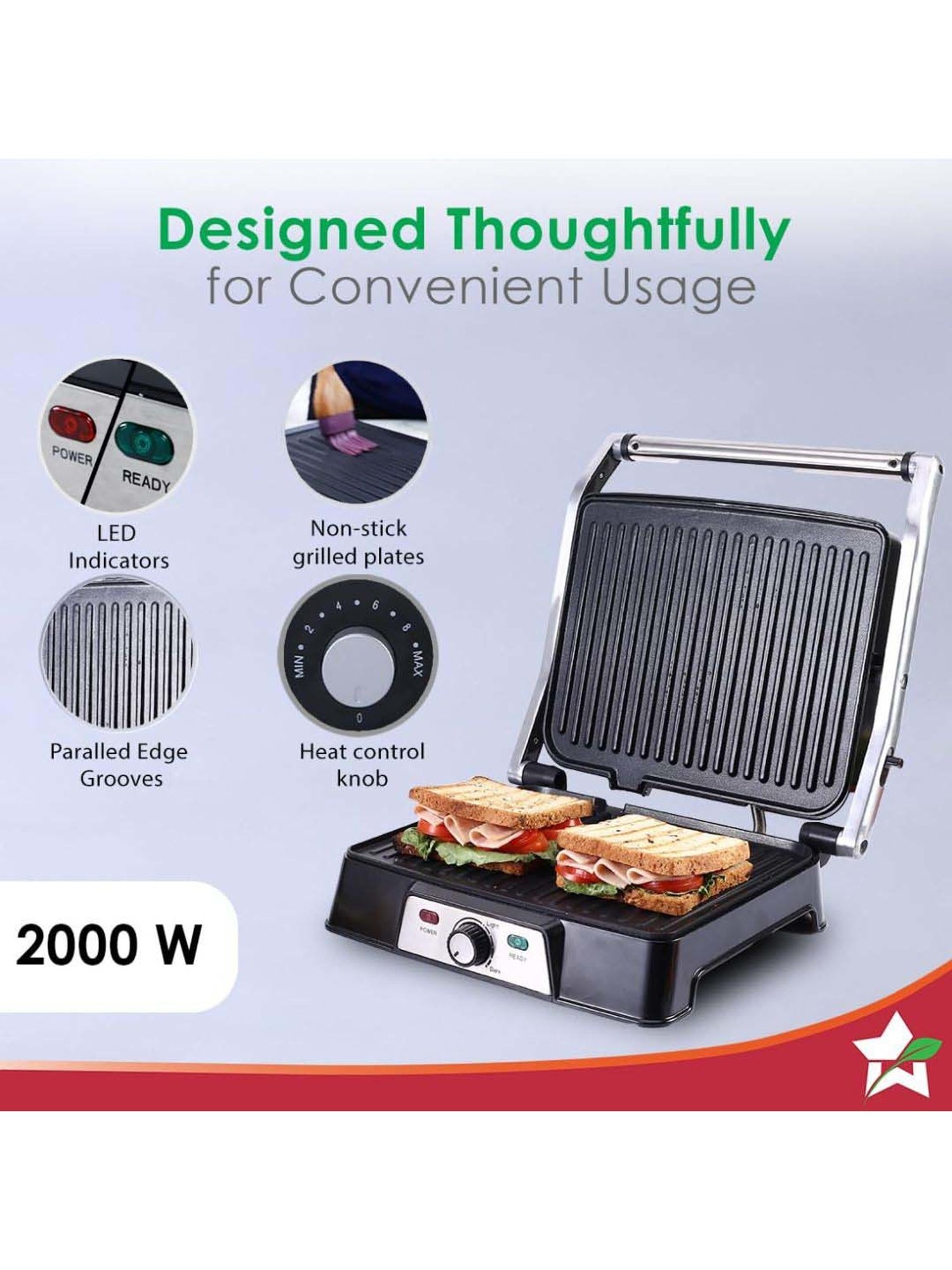 | Feature 2 | Feature: This mini appliance offers versatile cooking options, allowing you to Grill, Toast and Roast a variety of delicious dishes with ease. |