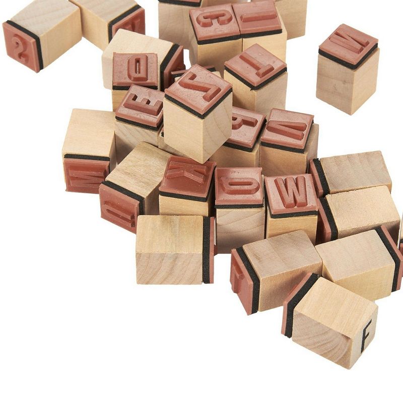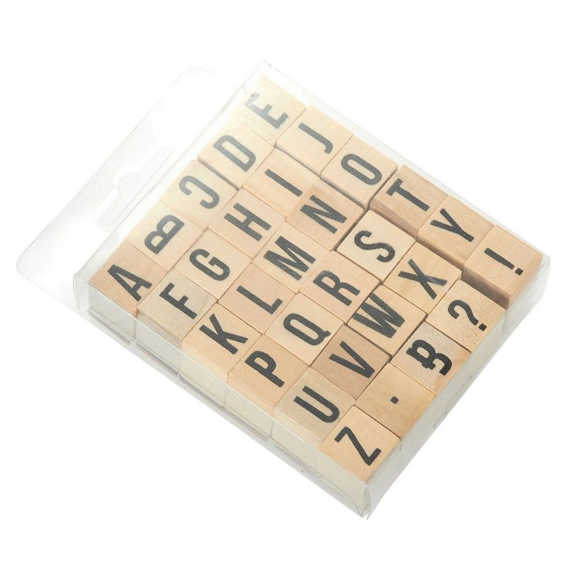 • WOOD MOUNTED RUBBER STAMP SET: Includes 30x Wooden Craft Stamps embossed with 26 alphabet letters and 4 punctuation symbols.