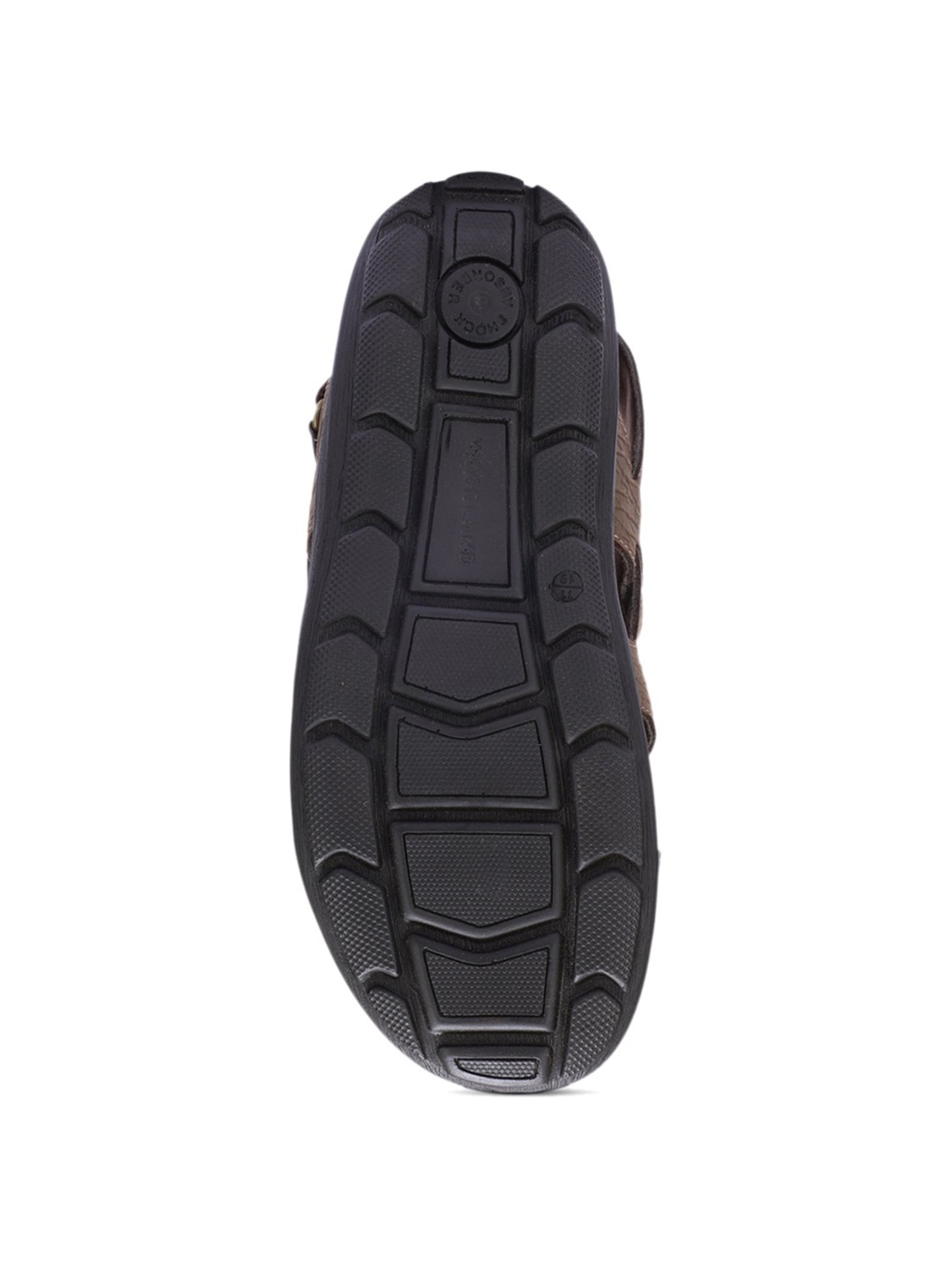 Featuring a style that makes it easy to wear, this pair of brown casual sandals from Woodland will be a smart pick for you. The stylish nubuck leather upper ensures longevity and also add to the overall look. The rubber sole provides you with a good traction. It will look good when matched with a pair of jeans and a T-shirt.