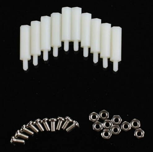 This 10-pack of standoffs includes 10 sets screws and nuts for securing the top of the standoff to your project.