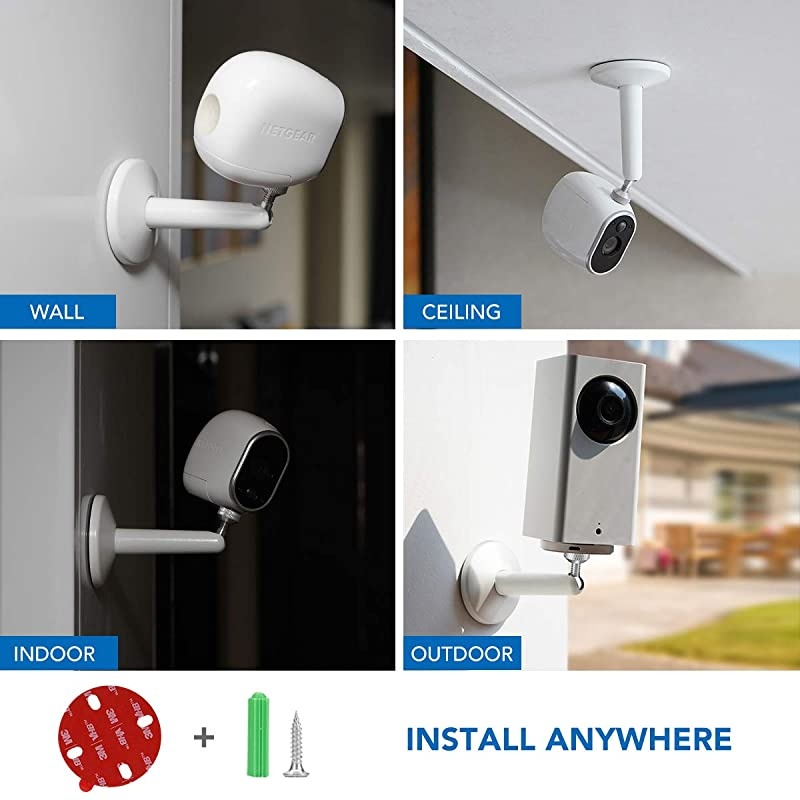 ***** **********Best Quality Guranteed. *****TRULY RUST PROOF - This metal security wall mount is made of rustproof aluminium alloy, stainless steel and POM materials, oxidation resistance and durable, meanwhile with the base cover there are no screws exposed when you choose to anchor it, no worry about rust showing up and great for both indoor and outdoor use. *****STRONG & ADJUSTABLE - Thanks to the 2-layer support rod, this security camera mount is stable and strong enough to hold your camera, prevent it from falling down. Also, it is easily adjustable with 360-degree swivel & 95-degree tilt, allowing the flexible positioning of your camera.