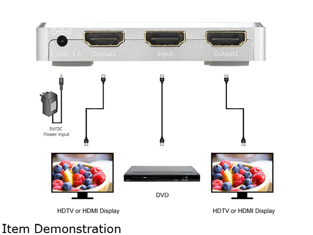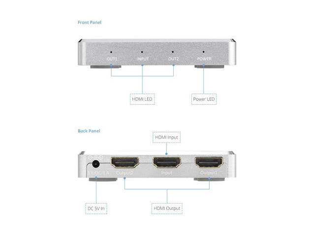 | Specifications | This high-performance HDMI splitter provides 1 HDMI into 2 HDMI outputs and supports 4K2K, Full 3D, 12-bit deep color as well as high definition lossless audio. With its 3 Gbps bandwidth and the additional features of the latest HDMI standards, you can be sure of great HDMI distribution. |