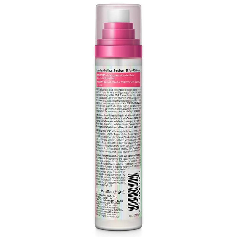 - Yes to a one-of-a-kind mist that will help brighten your day, and your skin! Formulated with grapefruit and vitamin C to help give your skin a hydrating, ultra luxurious glow in every soft mist pump. This gentle facial mist can be used any time, under or over makeup, morning, afternoon or night to increase radiance and leave your skin dewy and fresh. To apply this 96% natural ingredient mist, shake well to activate the glow-boosters. Close eyes and press down on pump to mist your dull skin worries away! Apply generously under or over makeup, whenever skin is low on glow.