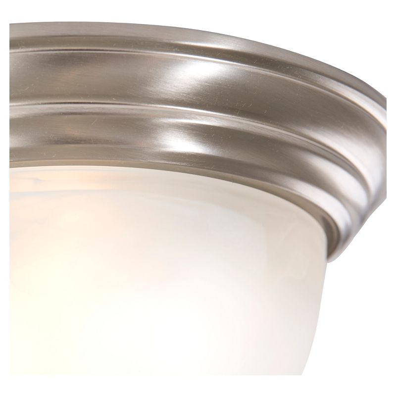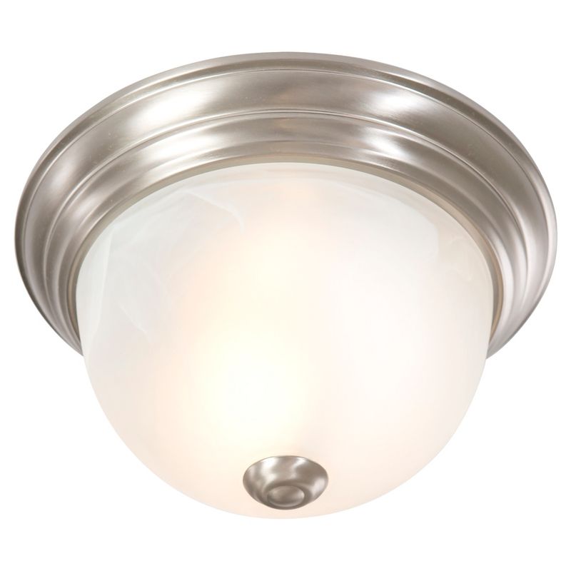 Yosemite Home Decor 1-Light Flush Mount features a satin nickel frame finish. This elegant light is equipped with convenient mounting brackets. This fixture is also UL-rated for safety and incredibly easy to install. Whether for rooms or foyers, optimal illumination can be secured with 1 medium base 75-watt incandescent bulbs. The fixture is 5 Inch in height and features metallic bands that match any home decor. At affordable rates, this product goes exceptionally well with marble glass units. The light truly captures ambiance in medium-sized rooms. Order now and brighten up your home today. Includes mounting brackets.Manufacturer provides 1 year warrant.