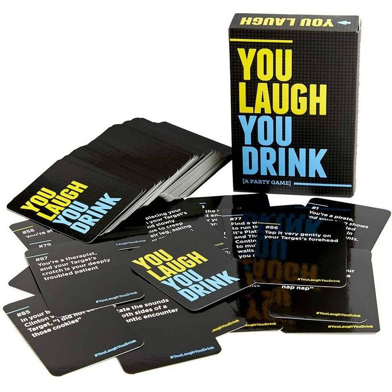 You Laugh, You Drink [A Party Game] is a drinking game for people who can’t keep a straight face. On their turn, players pick someone [a cartnear] in the group and have 30 seconds to make them laugh. Do what the card says and don’t hold back!