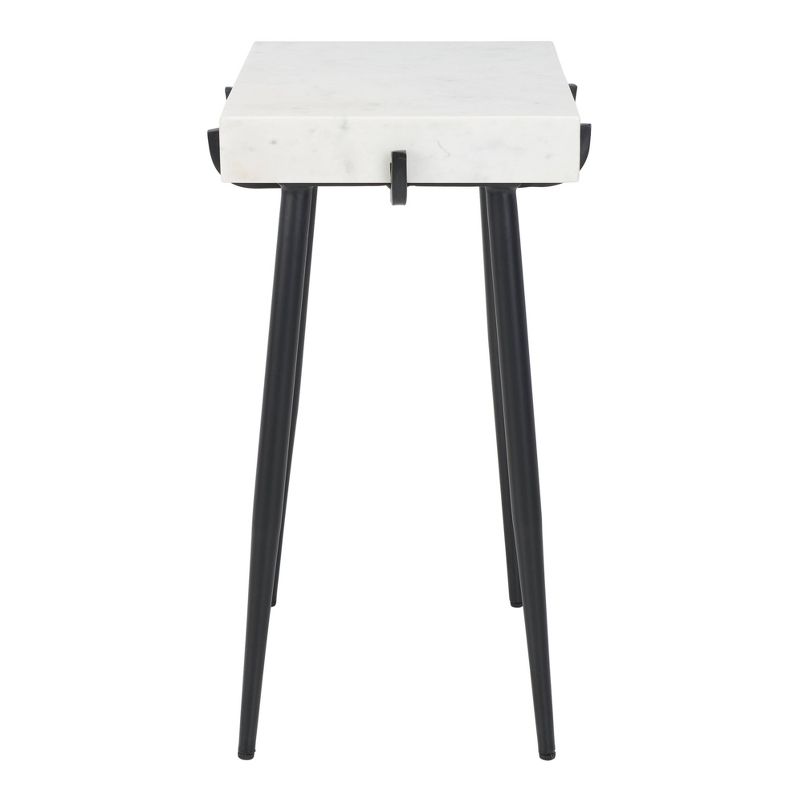 The Japanese call it Shibui. In decor we call it the unpretentious beauty of the Yuki Stone Top Accent Table. Offering the cool, clean lines of its white marble top and angled black metal legs of an open frame support, Yuki resounds, noiselessly, with mod style. The Yuki Stone Top Accent Table has some Mid-Century flares to it as well that would add beautifully to any living space. This Accent Table would be a alluring fit to any Modern or Mid-Century Space.
