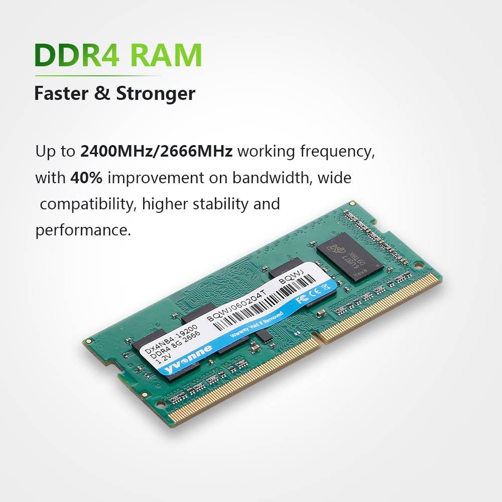 1. Up to 2400MHz working frequency, with great improvement on bandwidth and working efficiency, wide compatibility, higher stability and performance, specially designed for laptops.