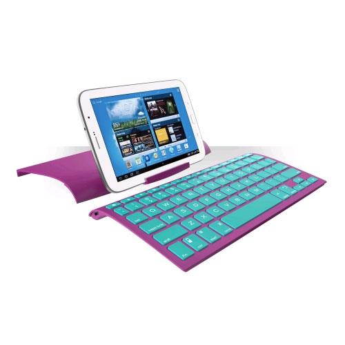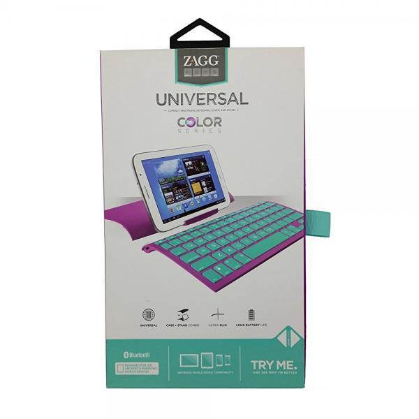 ZAGG ZAGGkeys Universal Wireless Keyboard - Purple with Mint Keys The ZAGGkeys Universal Wireless Keyboard (Purple with Mint Keys) is the most versatile iOS, Windows, and Android Bluetooth keyboard available. The ZAGG Universal features innovative programming that allows it to work with nearly any device or platform, simply switch between operating systems with the flick of a switch. The ergonomic design of the keyboard makes typing incredible comfortable while the Island-style keys provide the ability to type quicker and with less errors than other Bluetooth keyboards. The included durable case doubles as a stand for your device. The battery lasts for up to three months per charge and can be charged with the included USB charging cable. Compatible with: Windows, Android, Mac OS, iOS;