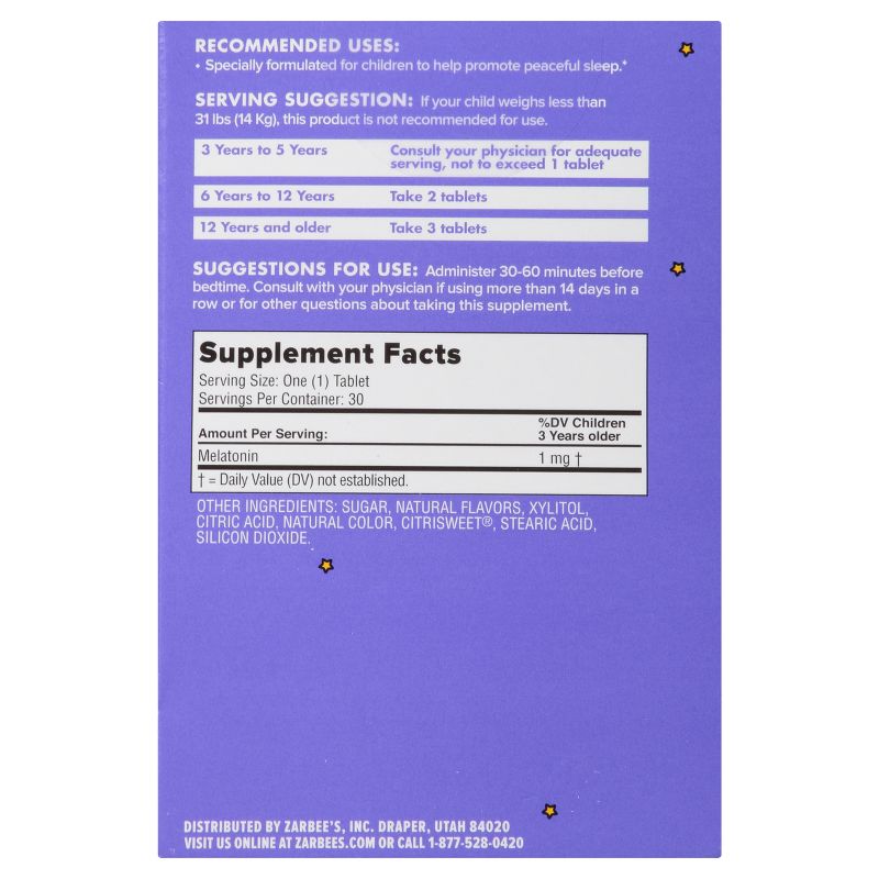 •Zarbee's Naturals with melatonin helps safely remedy your child's occasional sleeplessness.,