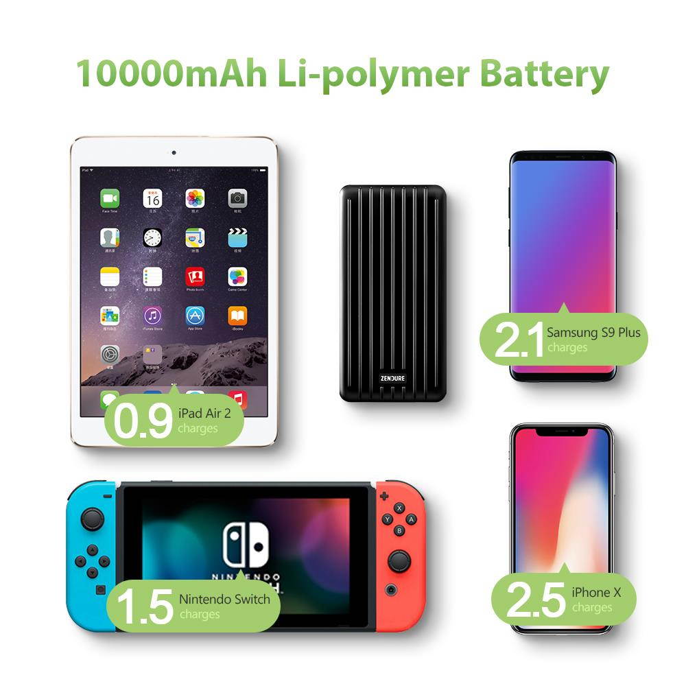 Fast charges your iPhone X, iPhone 8, or iPhone 8 Plus from 0 to 50% in just 30 minutes; Power your Nintendo Switch for 6 more hours of gameplay