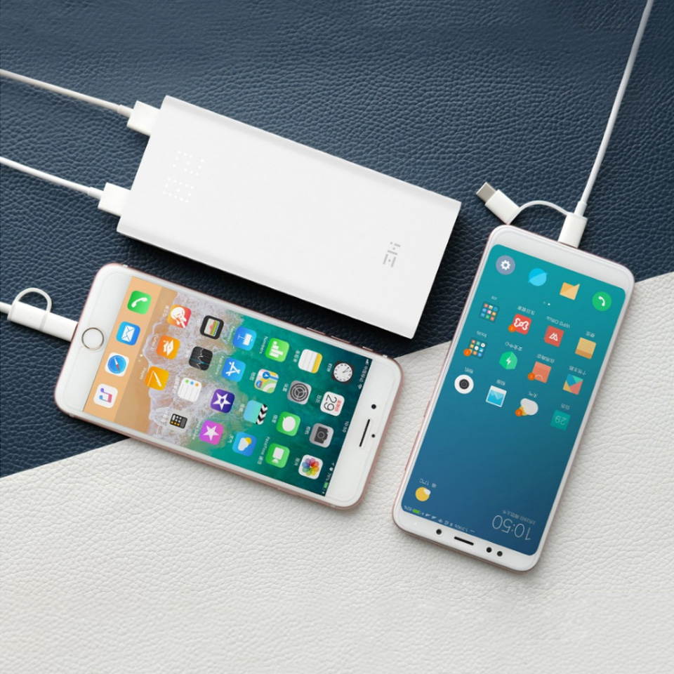 Simply double press the power button to enter 2-hour low power charging. Optimized charging / discharging efficiency Up to 93% conversion rate World-class chips not only are safer, but also improve charging conversion rate and stabilize discharging voltage with advanced resistance-capacitance sensors to optimize efficiency and durability. World-class chipset protection Nine layers of circuit protection Mi Power Bank's adopted USB smart-control and charging / discharging chips provide nine layers of circuit chip protection while enhancing efficiency. Charging cable included Support data transfers and charging 20000mAh ZMI Power Bank comes with a high-quality charging cable. The flat cable design prevents tangles and is sheathed in a soft but durable, non-toxic TPE material that prevents cable damage.