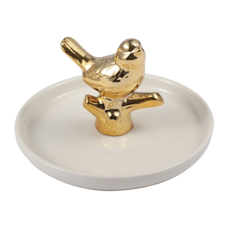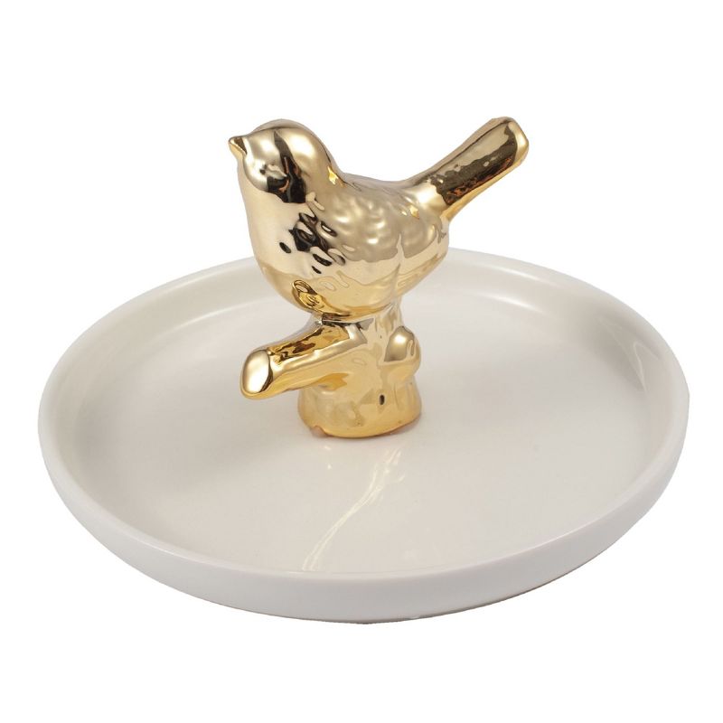 Gold Plated Ceramic Ring Holder, Bird x 1