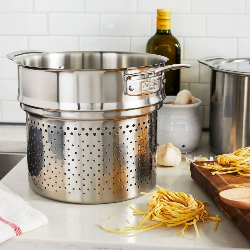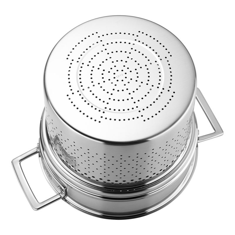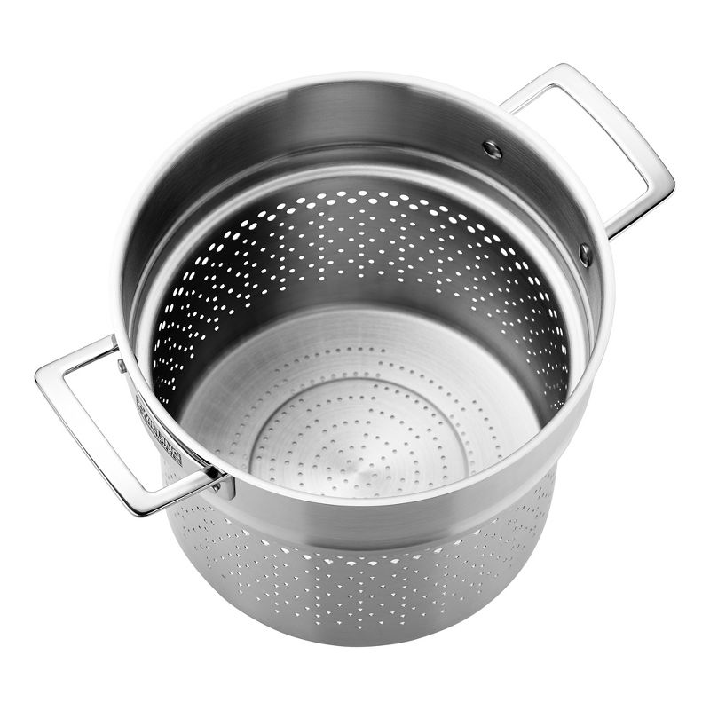 With a satin-finished stainless steel body and mirror-finished handles, this stylish, Belgian-made cookware adds aesthetic appeal to your kitchen. Featuring a beautiful logo nameplate, the ergonomic, stay cool handles ensure easy maneuvering and are securely riveted.The 5-Ply fully clad construction boasts perfect browning, outstanding frying, and stellar searing. Even cooking is guaranteed with the superior heat conduction and flat base stability, which prevents the pans from bulging. Enjoy uncomplicated cooking thanks to the dripless pouring rims and tight fitting, energyefficient lids.