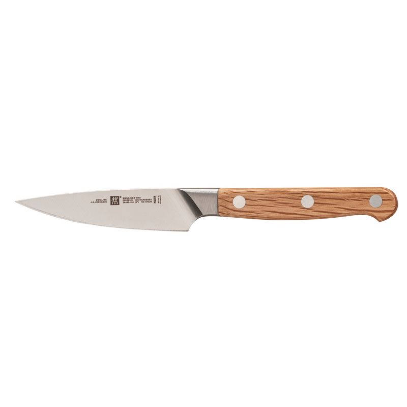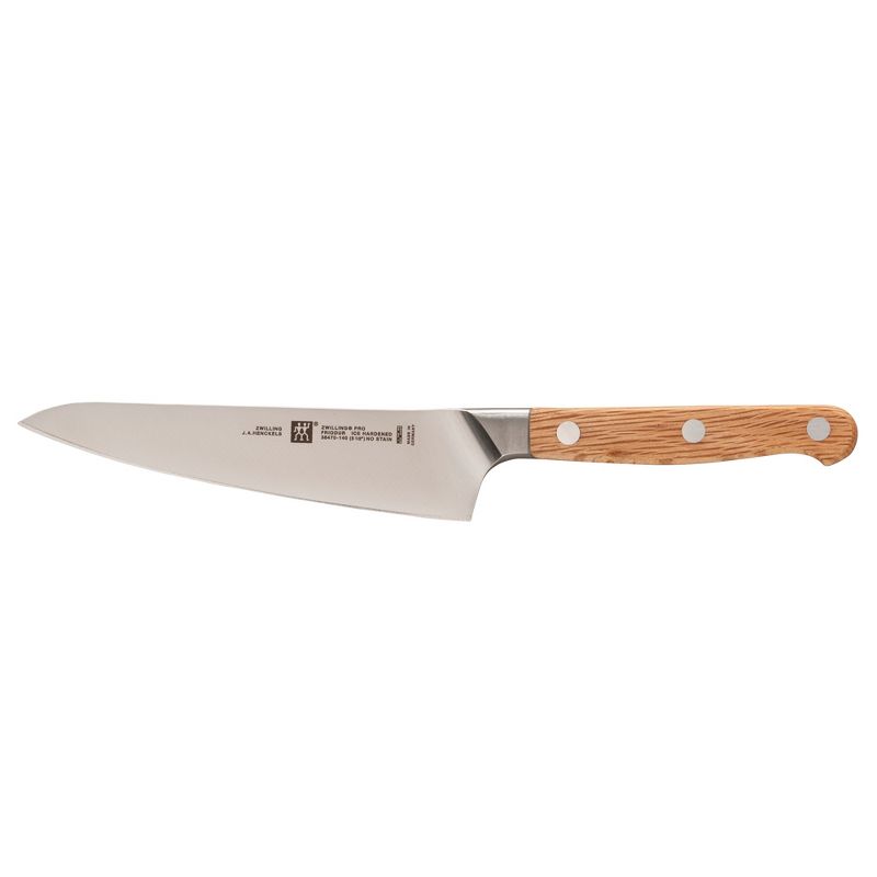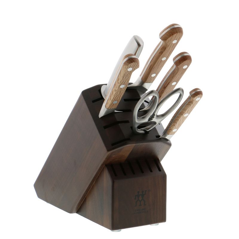 Respected as an innovator in the industry, ZWILLING J.A. Henckels remains rooted in the foundation upon which it was built: a tradition of quality and excellence forged nearly three centuries ago. The ZWILLING Pro Holm Oak adds a handsome wooden handle to the company's most user-friendly knife, the ZWILLING Pro. Crafted from Mediterranean Holm Oak, this ergonomic, triple-riveted handle boasts strength and stability within its handsome wood grain.Combined with the innovative curved bolster, which acts as an extension of the hand, chefs enjoy improved comfort and cutting technique with every use. Strengthened by an exclusive, special formula, high carbon stainless steel, the ice-hardened blades are harder, sharper, and they will not stain or chip. Discerning chefs appreciate how well they retain their sharpness with regular use.From precision-forged blade to beautiful handle, the ZWILLING Pro Holm Oak merges style and substance in one striking knife collection.